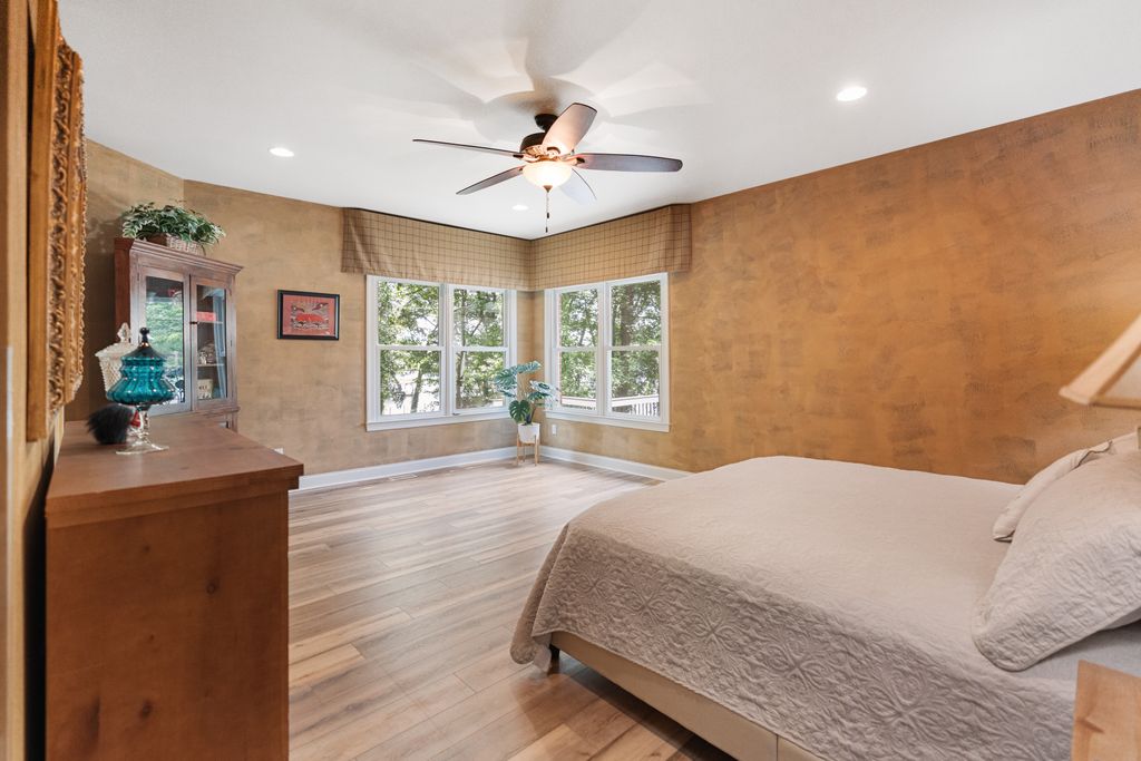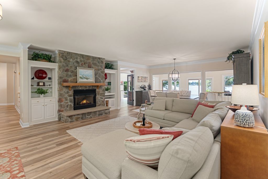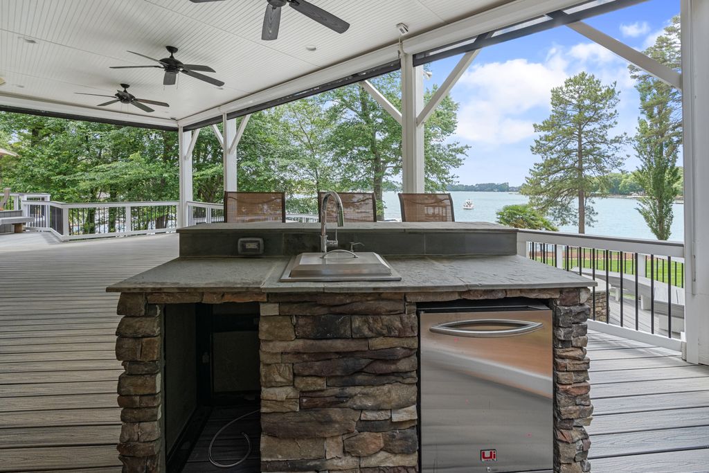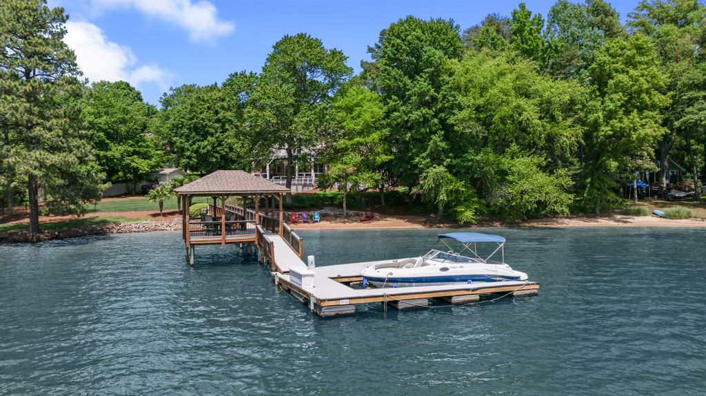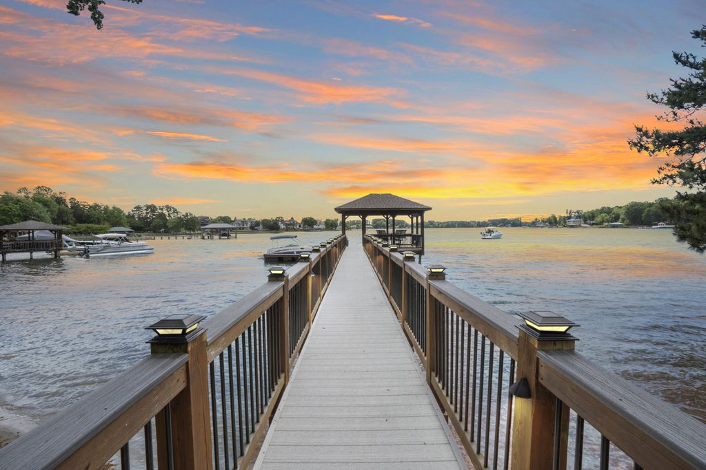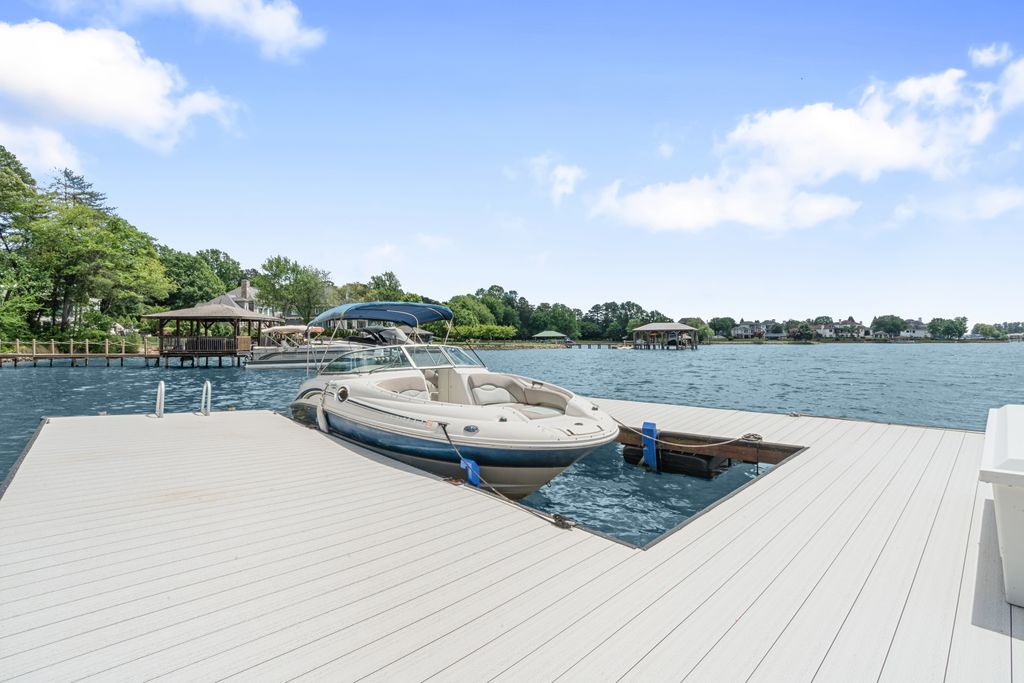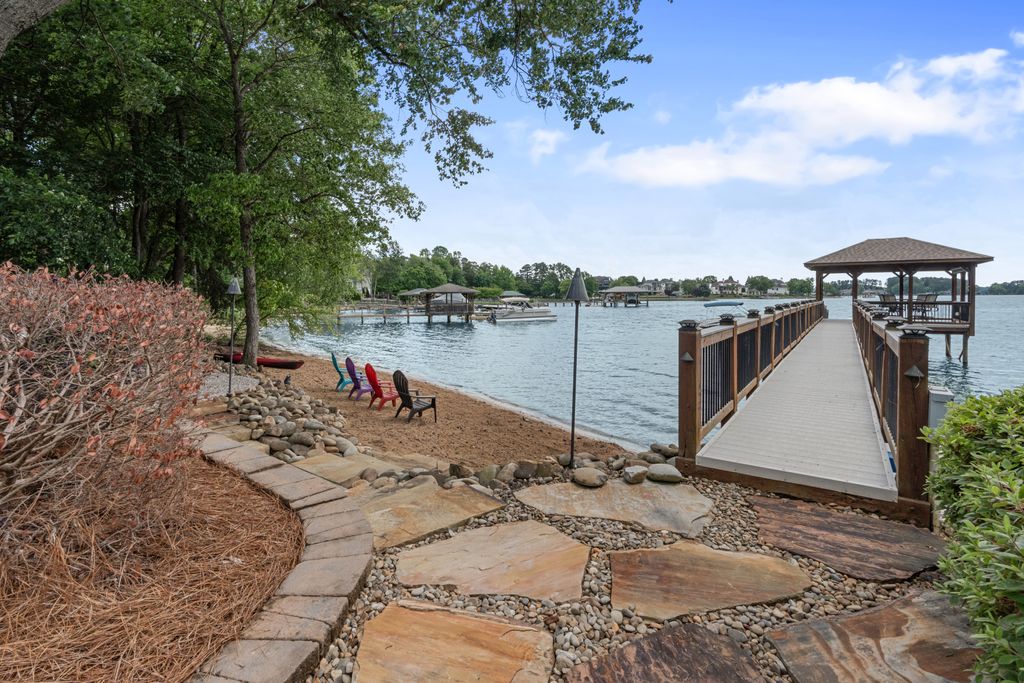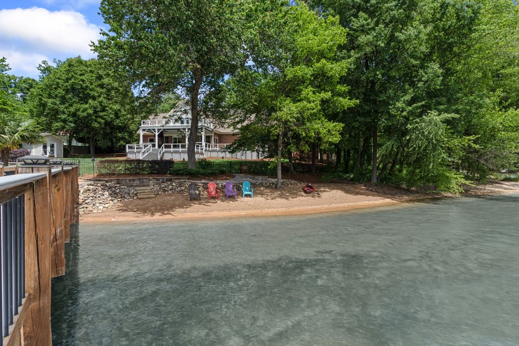 Rare Lake Norman Gem! Don't miss this extremely rare chance to own a true waterfront retreat on over 1 acre in Cornelius, nestled in the desirable Peninsula community but with no HOA restrictions. Enjoy the peaceful beauty of Lake Norman with lush landscaping, a natural sandy beach, and a private, level backyard ideal for entertaining. Relax on the oversized covered deck with remote shades or gather on the spacious patio. This 5,700 SF home offers 2 luxurious primary suites (main & upper level), a sunroom with stunning lake views, a media/bonus room with a kitchenette, 3 very spacious guest rooms & a gym. Extremely well cared for, recent upgrades include new roof (2023), windows (2020), luxury vinyl & tile flooring, kitchen appliances (2021), privacy fence (2020), Leaf Filter gutters (2023), new attic insulation, sealed crawlspace & more. Lake activities await with the Private pier, a covered sitting dock area & HydroHoist boat Lift. A blend of quality living, privacy & convenience!