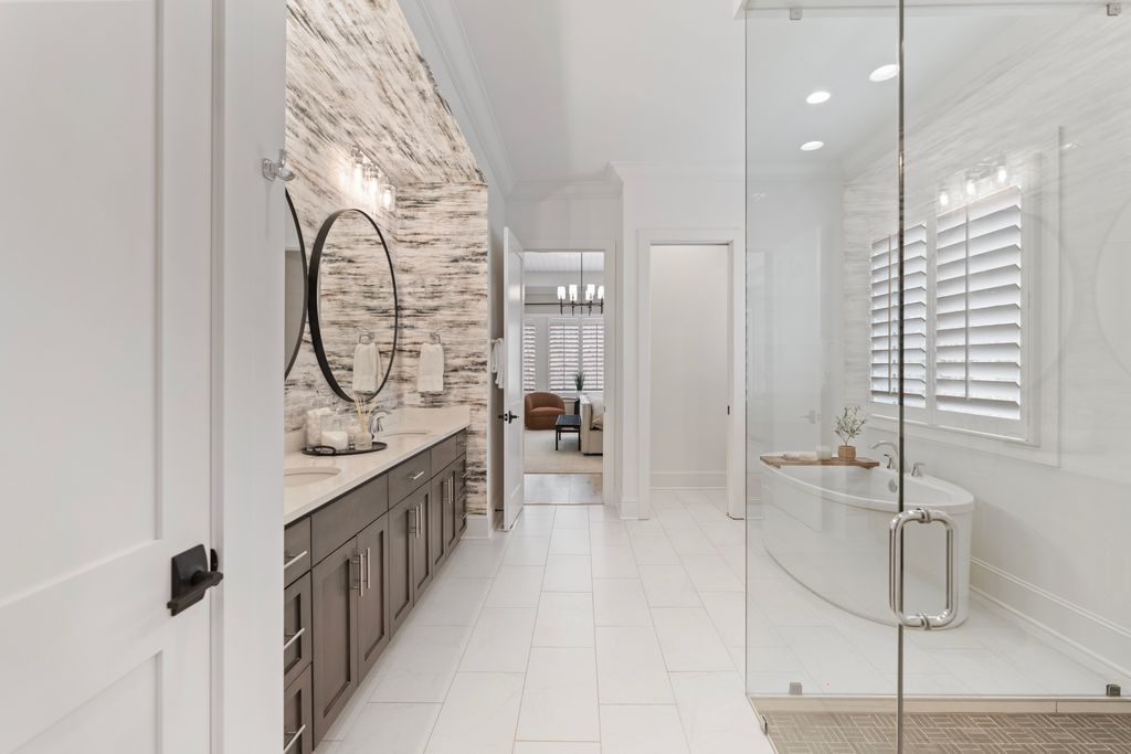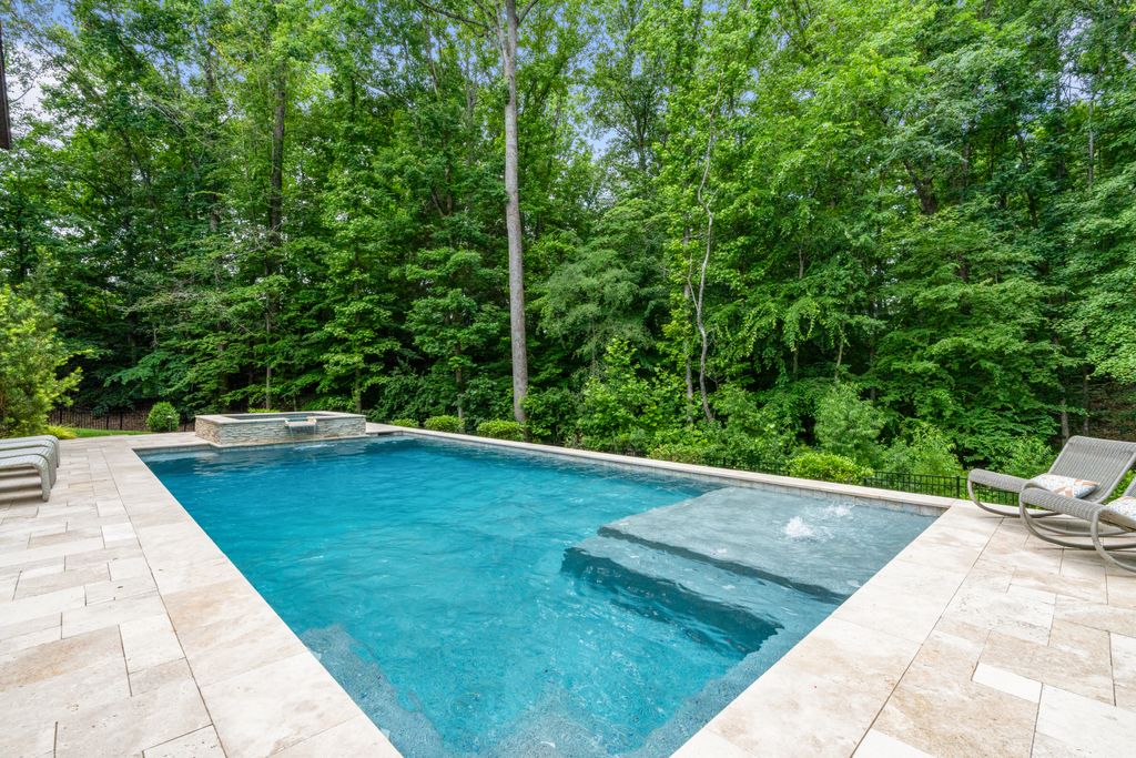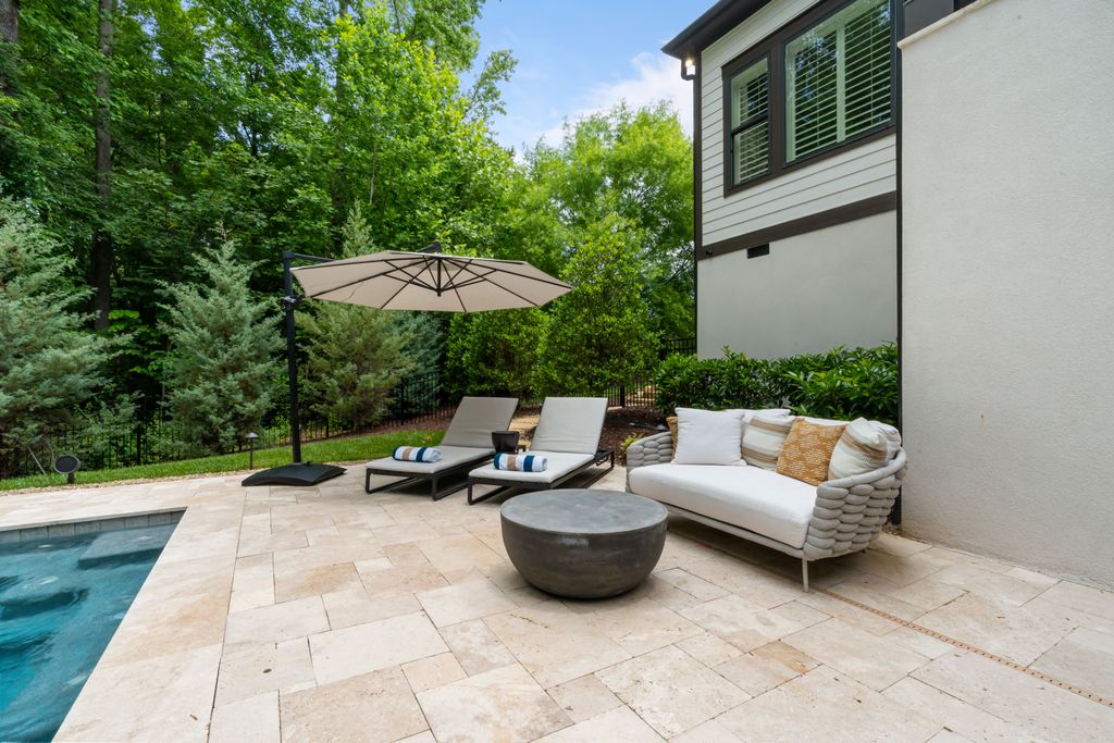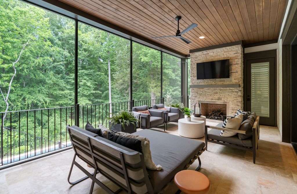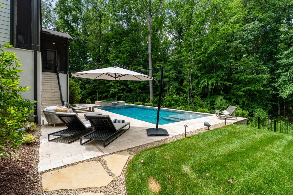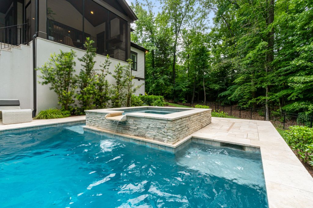 Upstairs, a spacious game room with wet bar creates the perfect gathering space, alongside three additional bedrooms - each with its own ensuite bath. A thoughtfully designed private wing offers ultimate flexibility for an au pair, in-laws, or extended stay guests, complete with a second laundry room, kitchenette, and expansive bonus space. Seamless indoor-outdoor living is showcased through two screened porches featuring a fireplace and built-in gas grill -perfect for year-round enjoyment. The resort-style backyard is a true retreat, highlighted by a custom pool and spa surrounded by luxurious travertine hardscape. Additional features include a standing-height encapsulated crawlspace offering exceptional storage, and a 3+ car garage outfitted with custom storage systems, epoxy flooring, and EV charging stations.