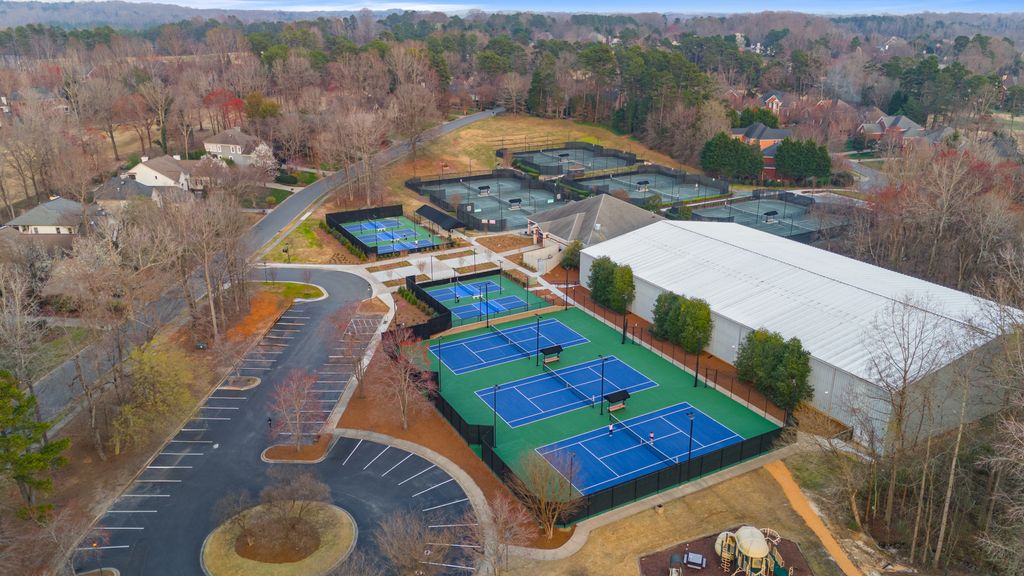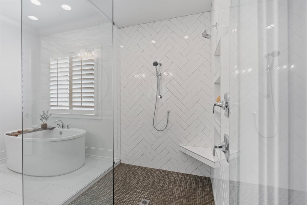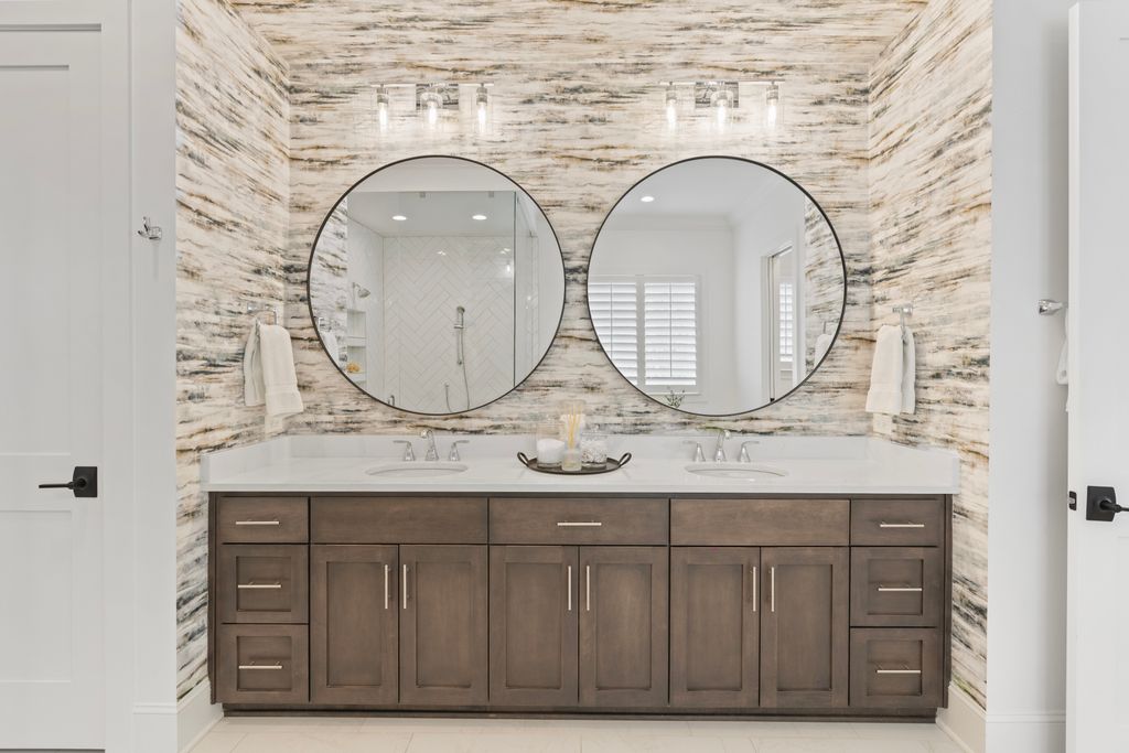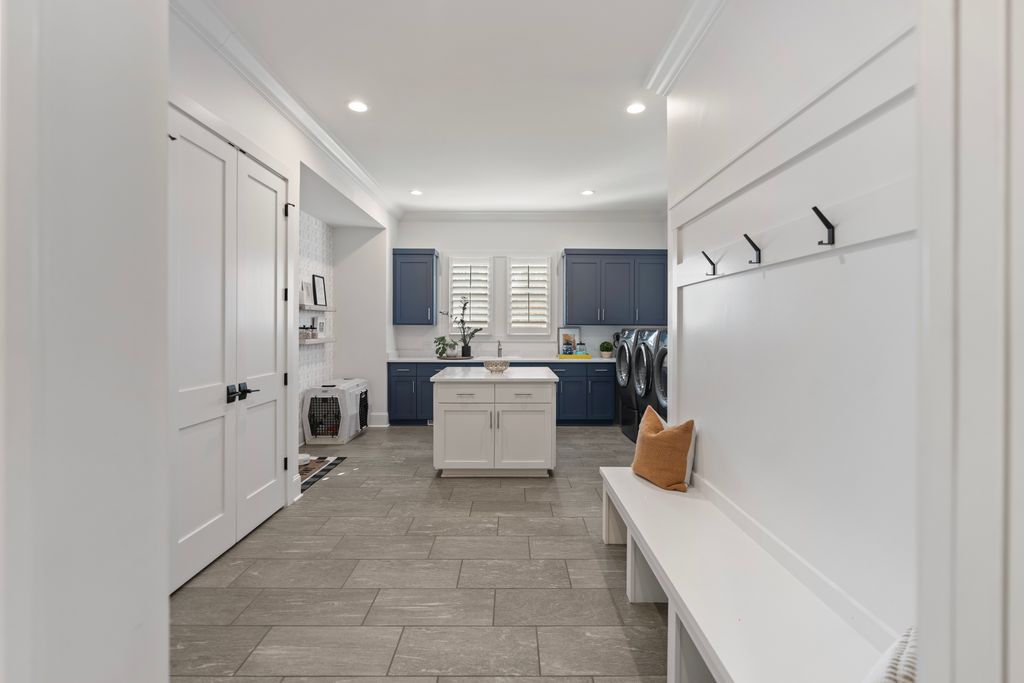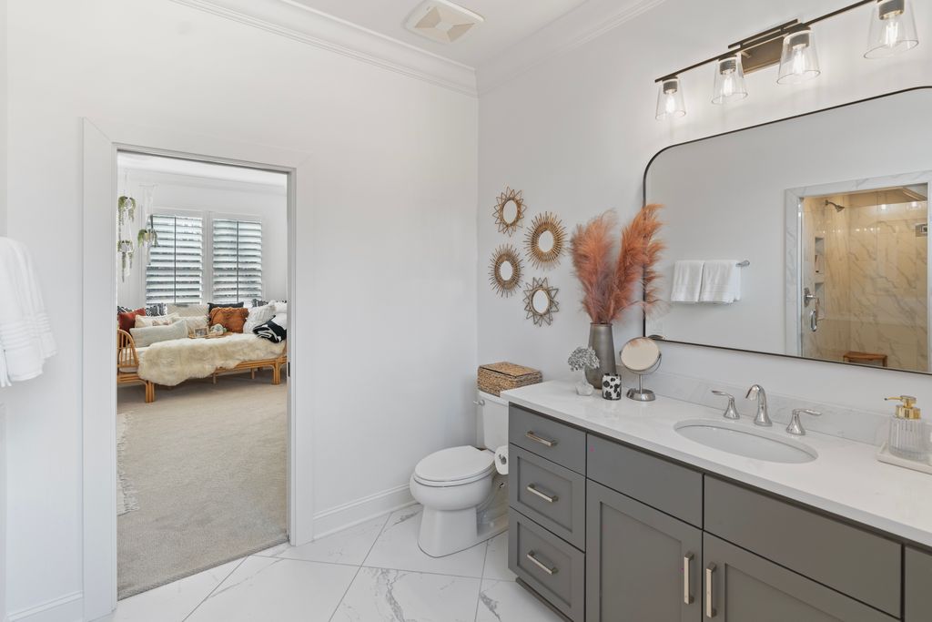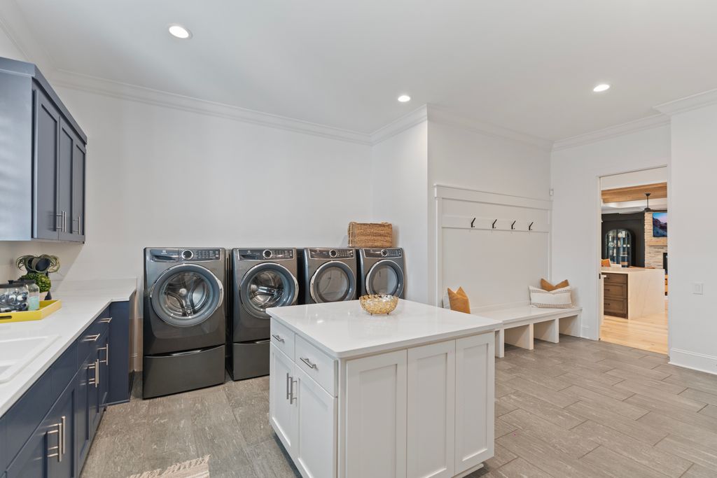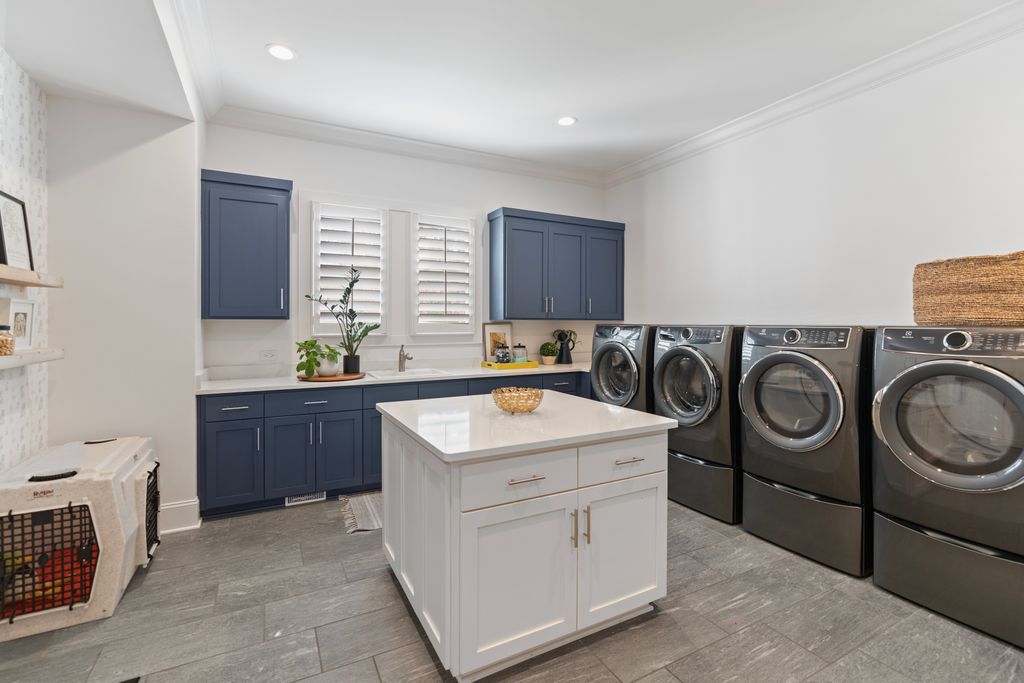 Upstairs, a spacious game room with wet bar creates the perfect gathering space, alongside three additional bedrooms - each with its own ensuite bath. A thoughtfully designed private wing offers ultimate flexibility for an au pair, in-laws, or extended stay guests, complete with a second laundry room, kitchenette, and expansive bonus space. Seamless indoor-outdoor living is showcased through two screened porches featuring a fireplace and built-in gas grill -perfect for year-round enjoyment. The resort-style backyard is a true retreat, highlighted by a custom pool and spa surrounded by luxurious travertine hardscape. Additional features include a standing-height encapsulated crawlspace offering exceptional storage, and a 3+ car garage outfitted with custom storage systems, epoxy flooring, and EV charging stations.
