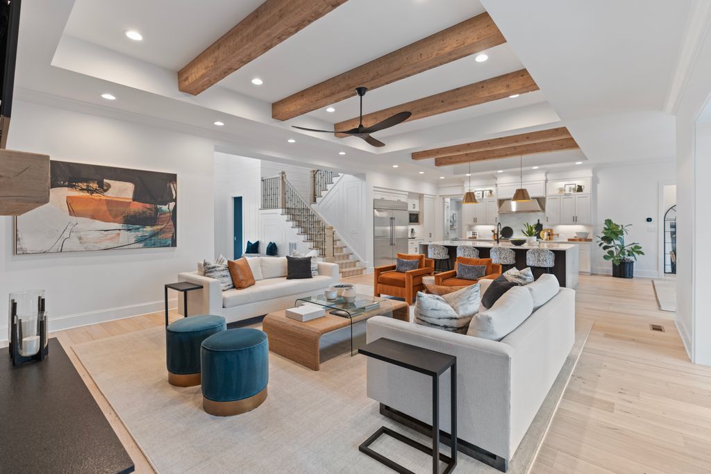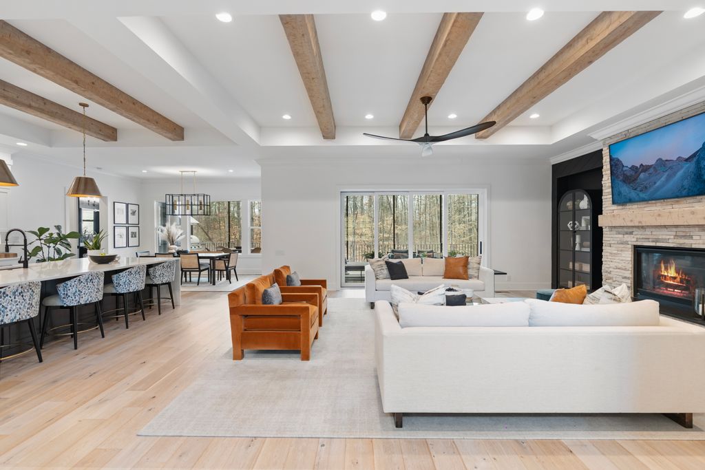 Set on 1.8 private acres in The Reserve at River Run, this exceptional 6,448-square-foot custom estate was masterfully designed by Kathryn Lilly Interiors, seamlessly blending refined sophistication with everyday livability.