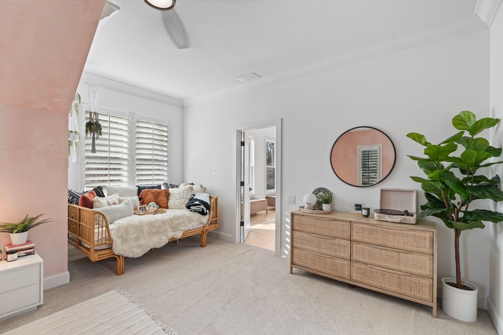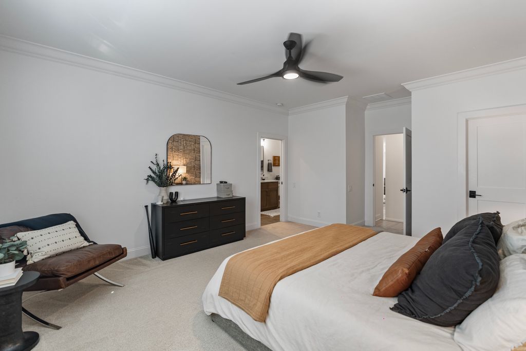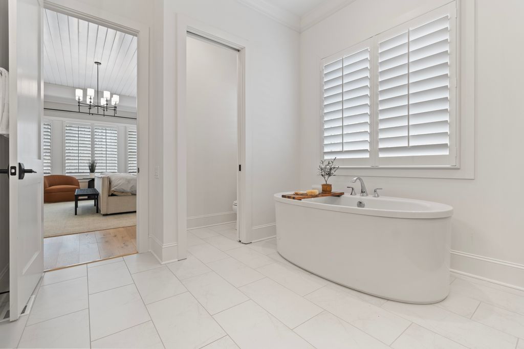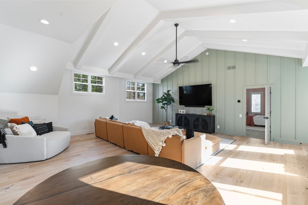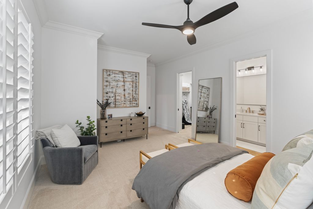 The primary suite is a private sanctuary on the main level, offering a spa-inspired bath and a fully customized dressing room. A generous guest suite with ensuite bath provides comfort and convenience for visitors.
