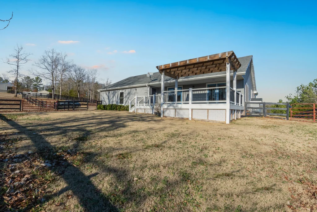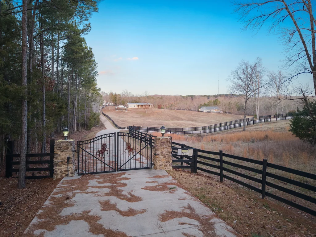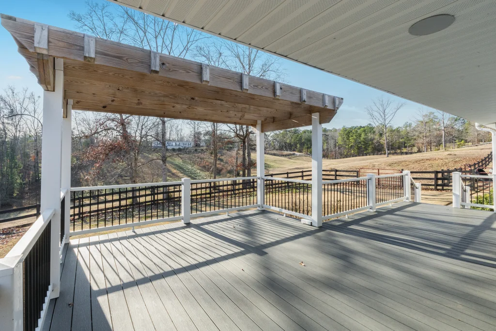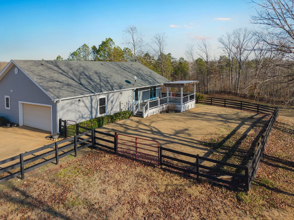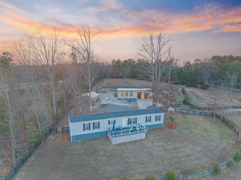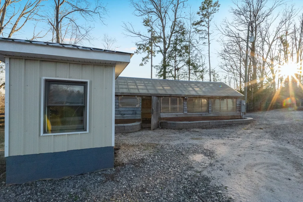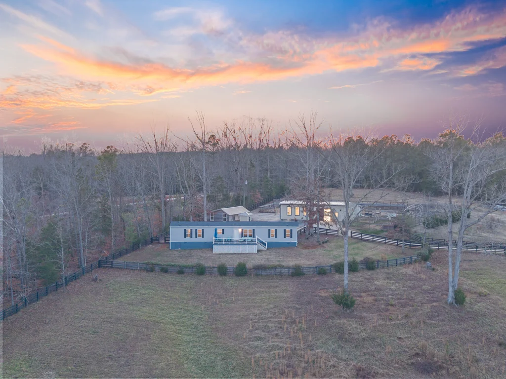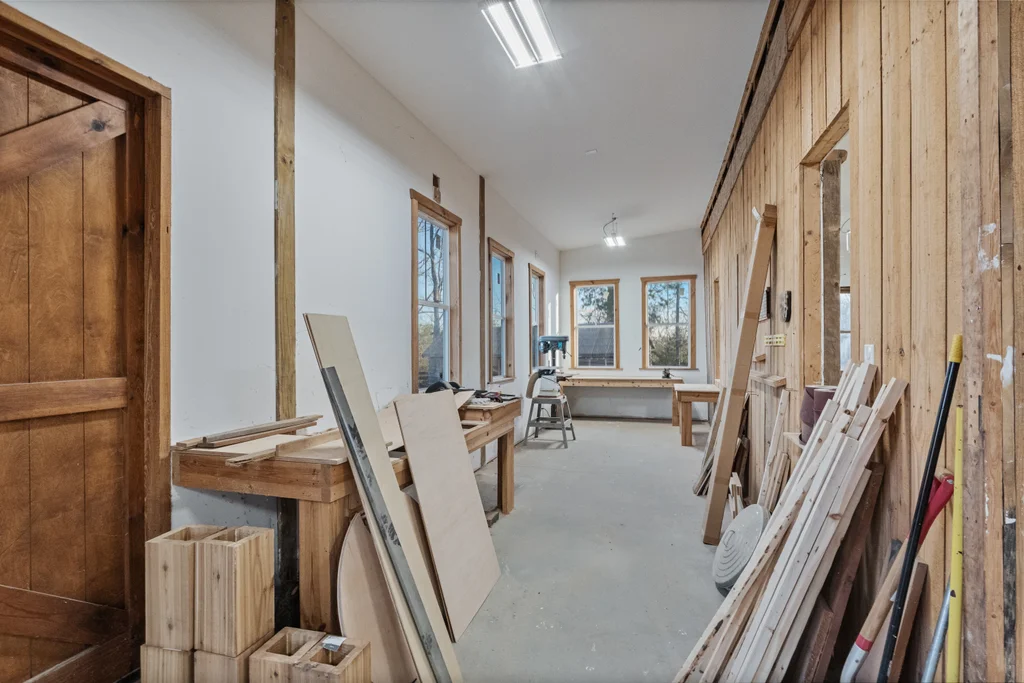 4 Stalls, tack room, feed room, Over hangs on front and back. Water / power equipped. Fans in each stall