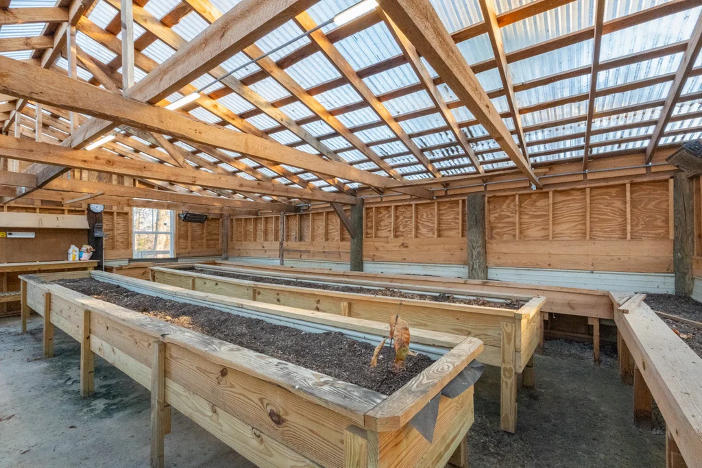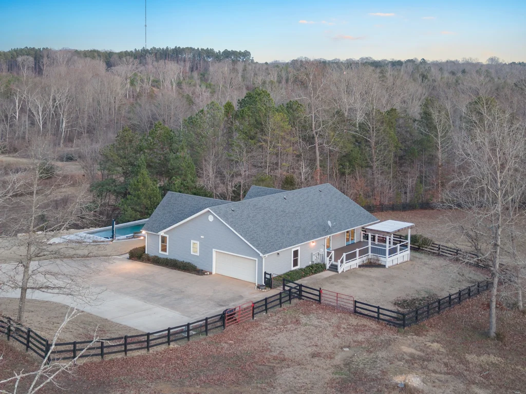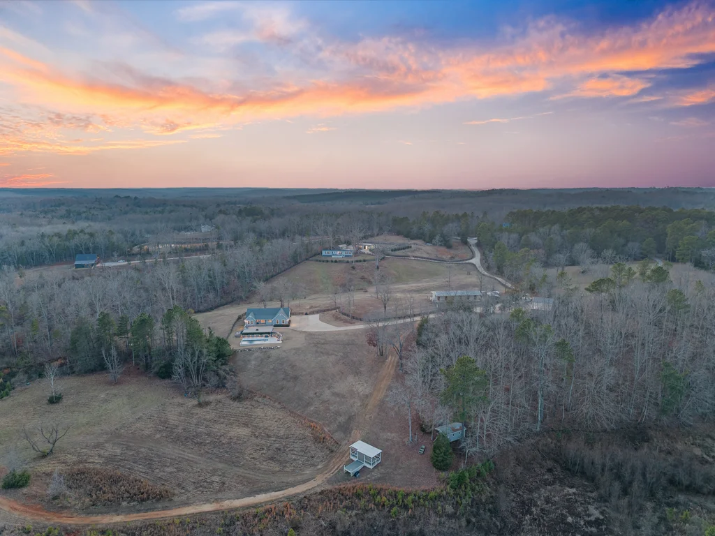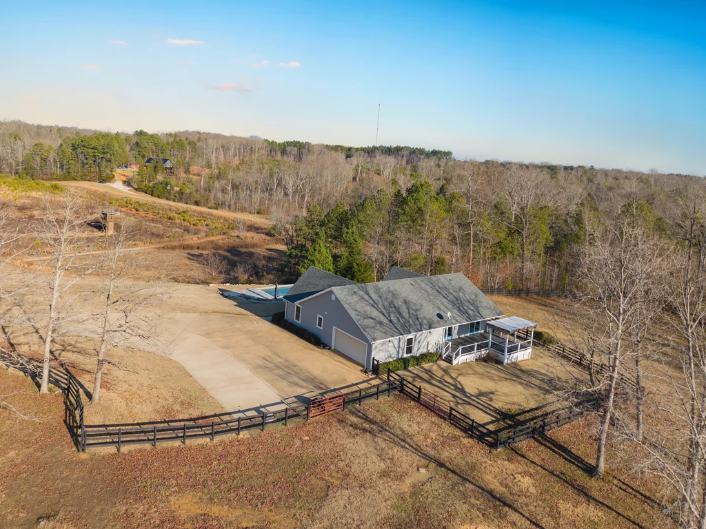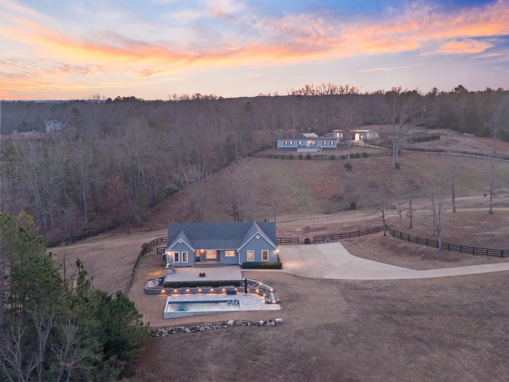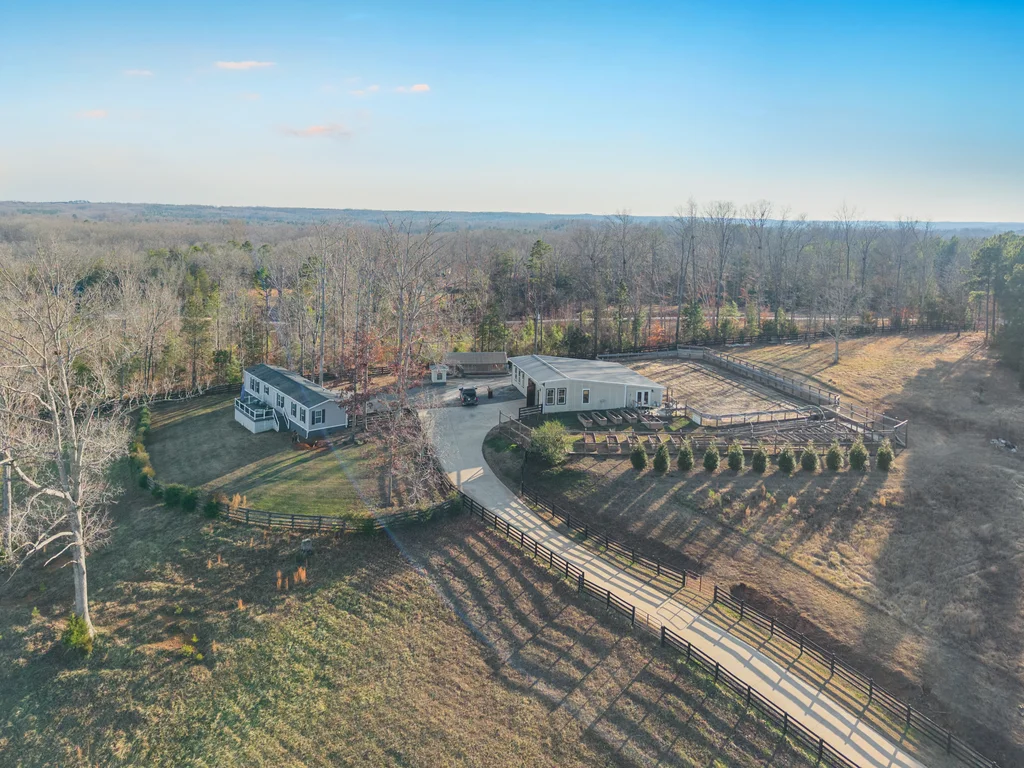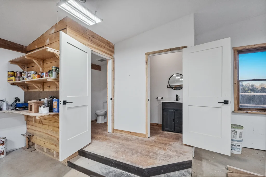 4 Stalls, tack room, feed room, Over hangs on front and back. Water / power equipped. Fans in each stall