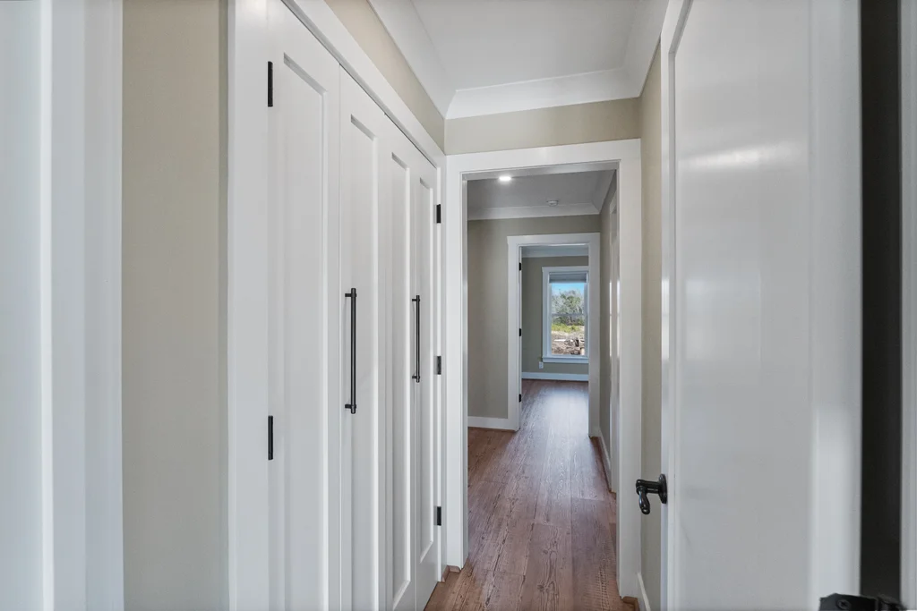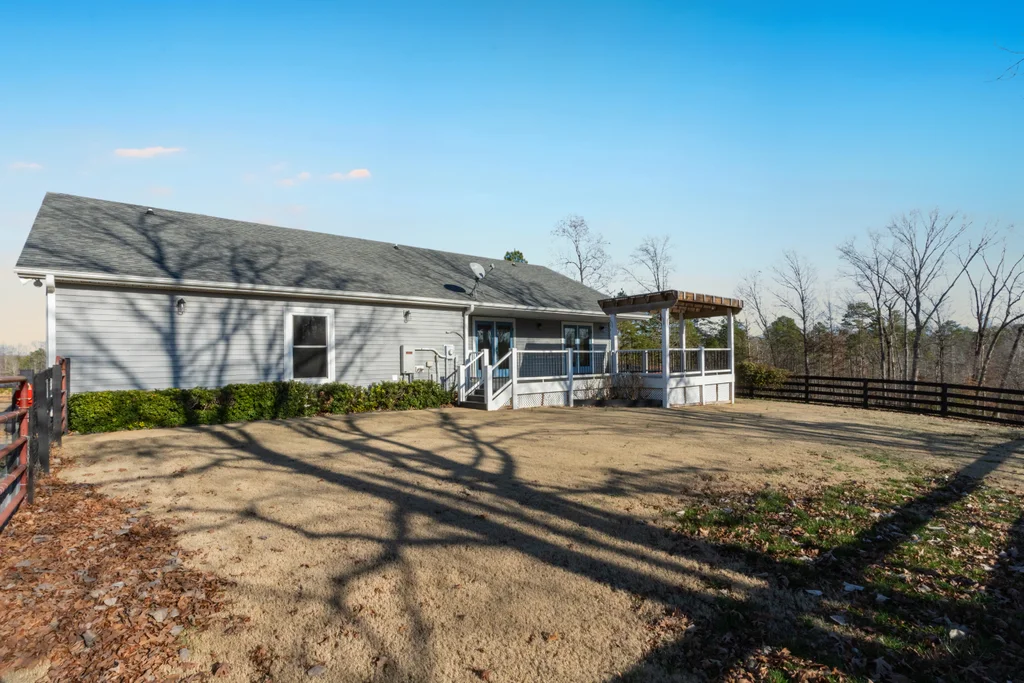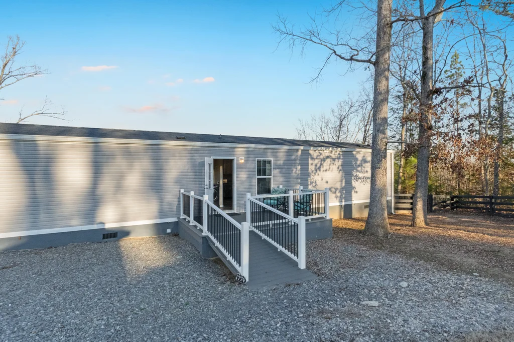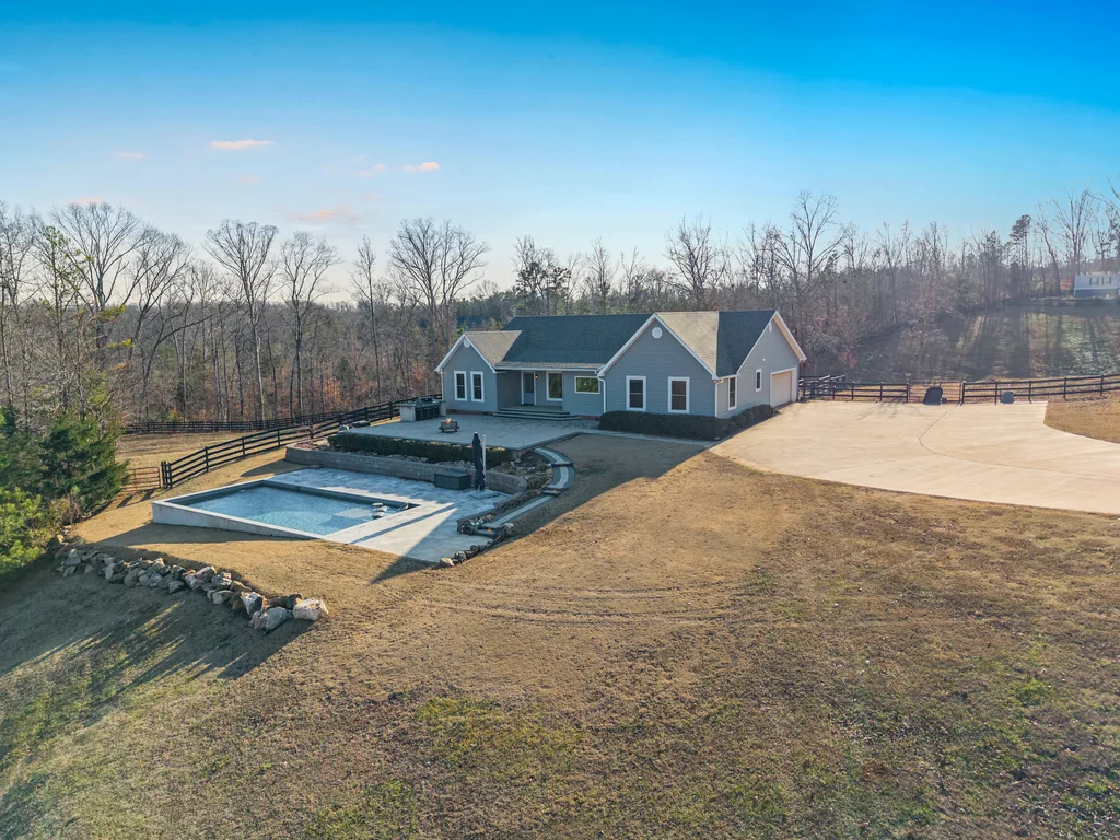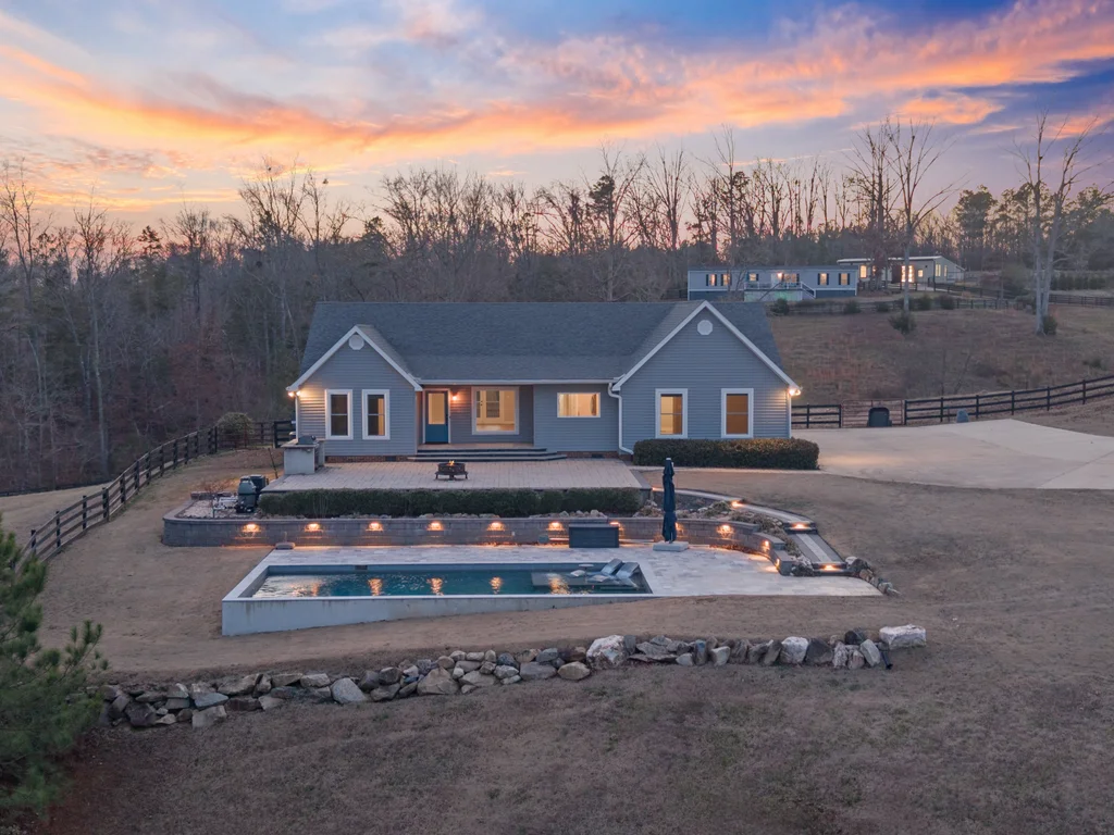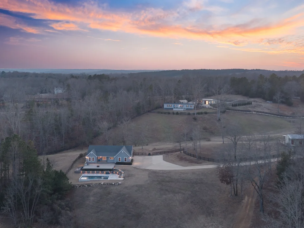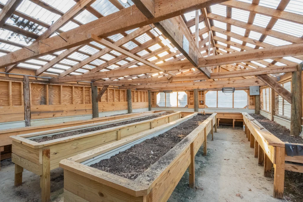 4 Stalls, tack room, feed room, Over hangs on front and back. Water / power equipped. Fans in each stall