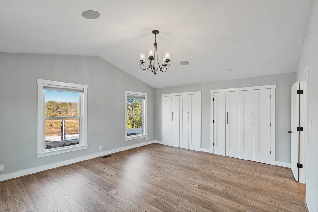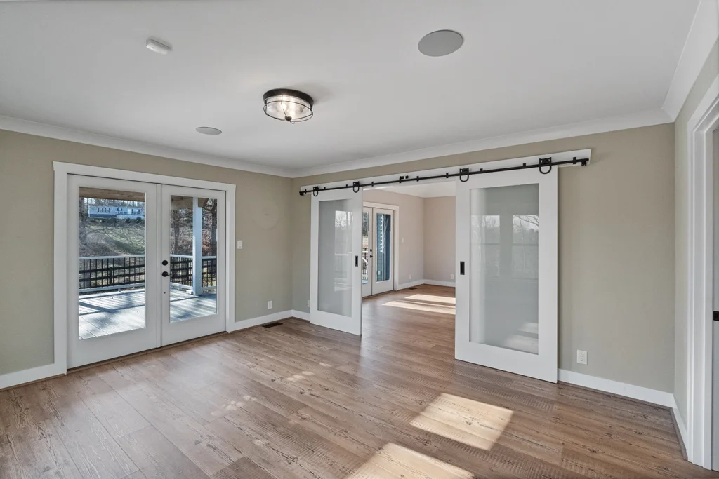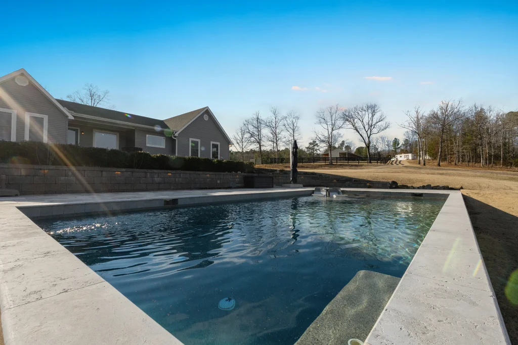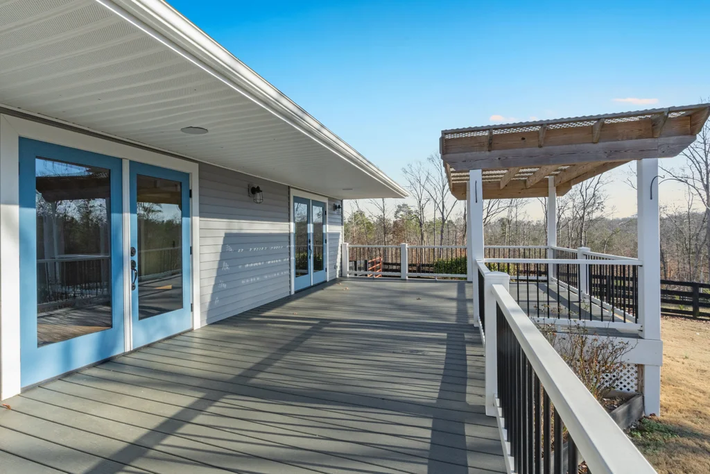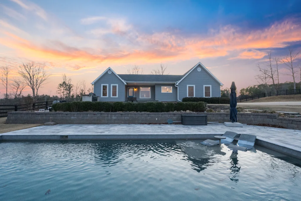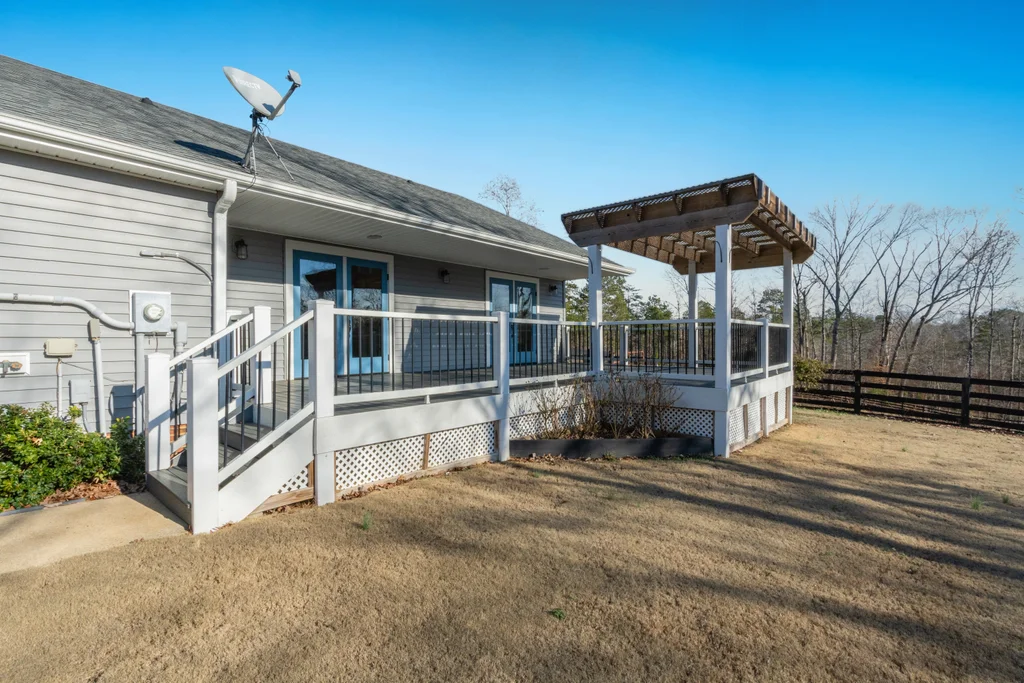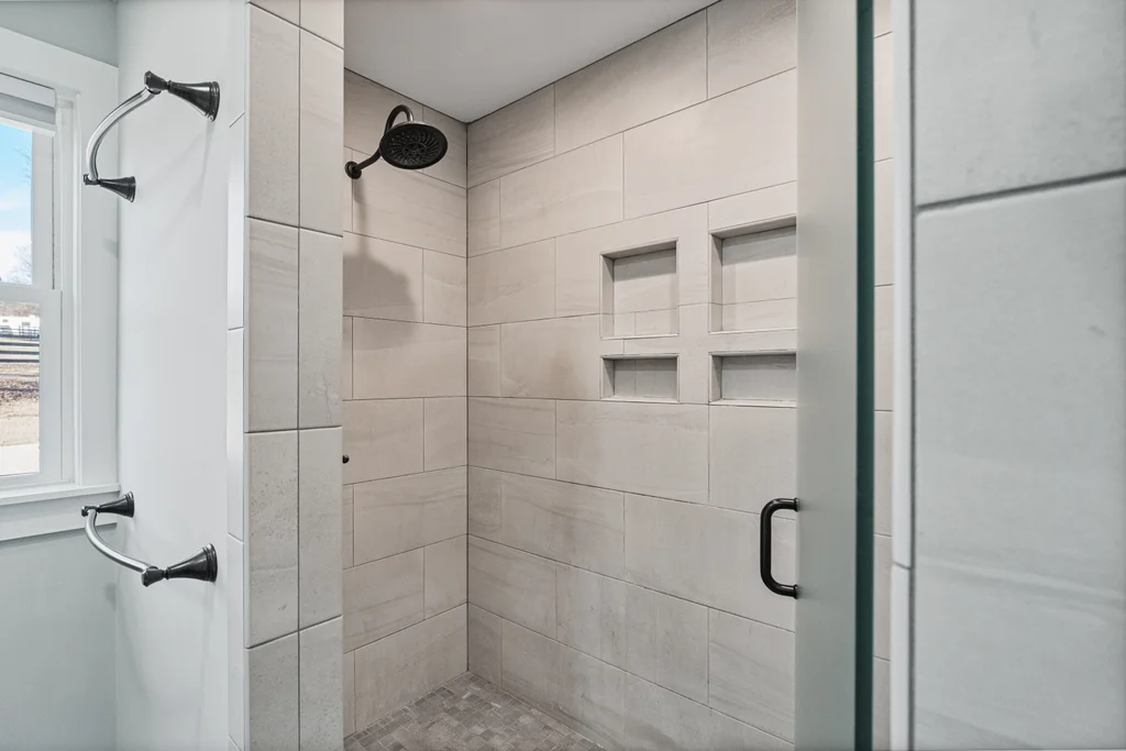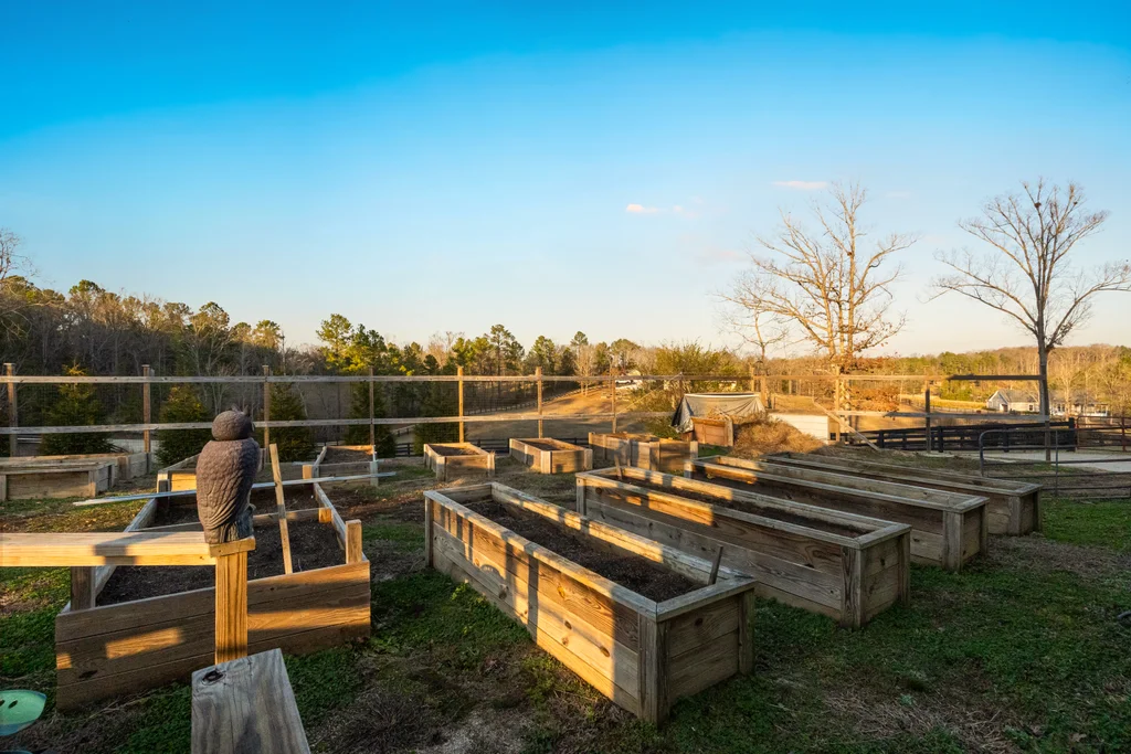 4 Stalls, tack room, feed room, Over hangs on front and back. Water / power equipped. Fans in each stall