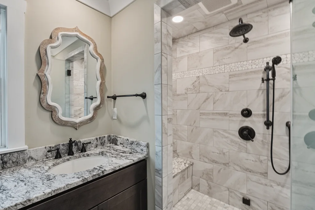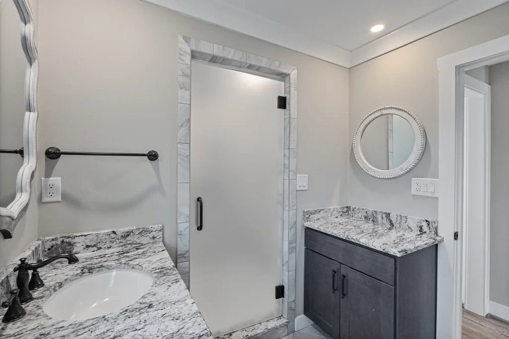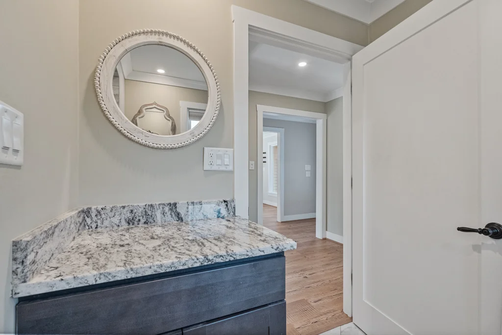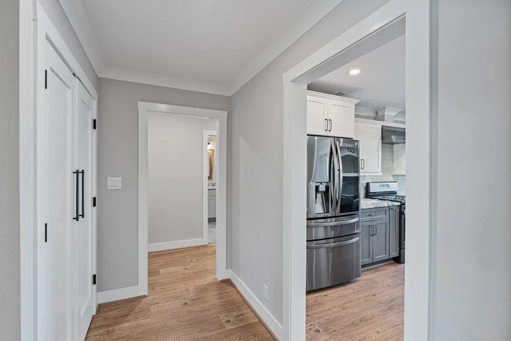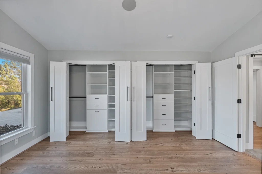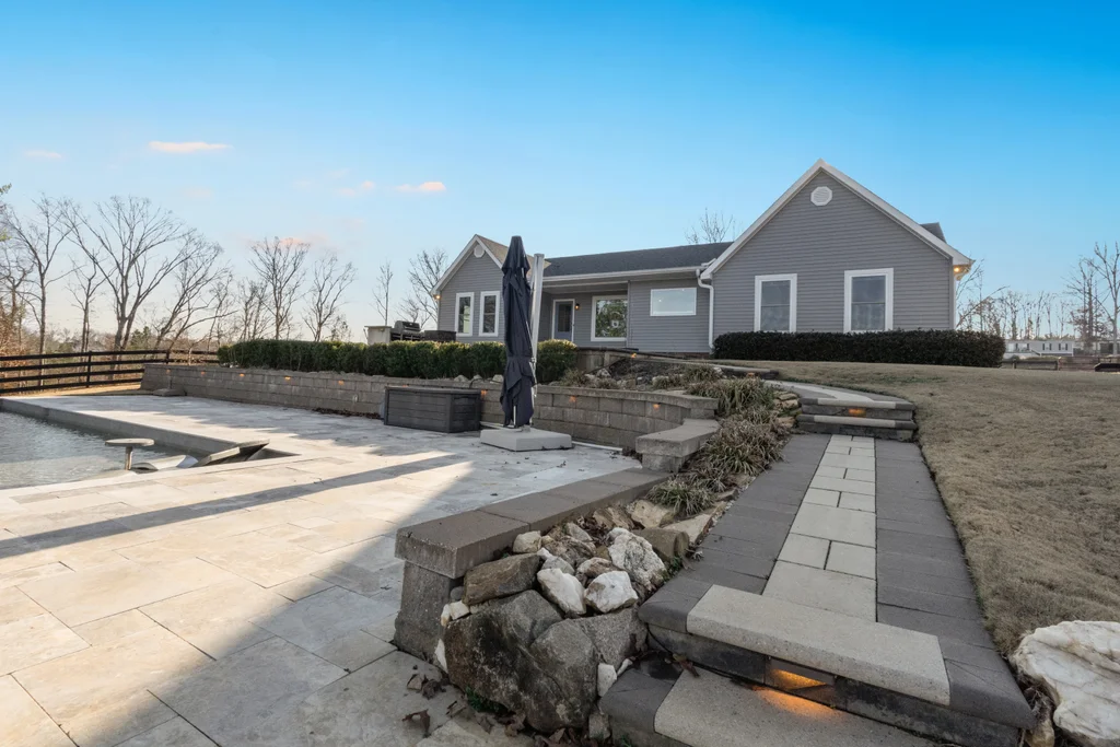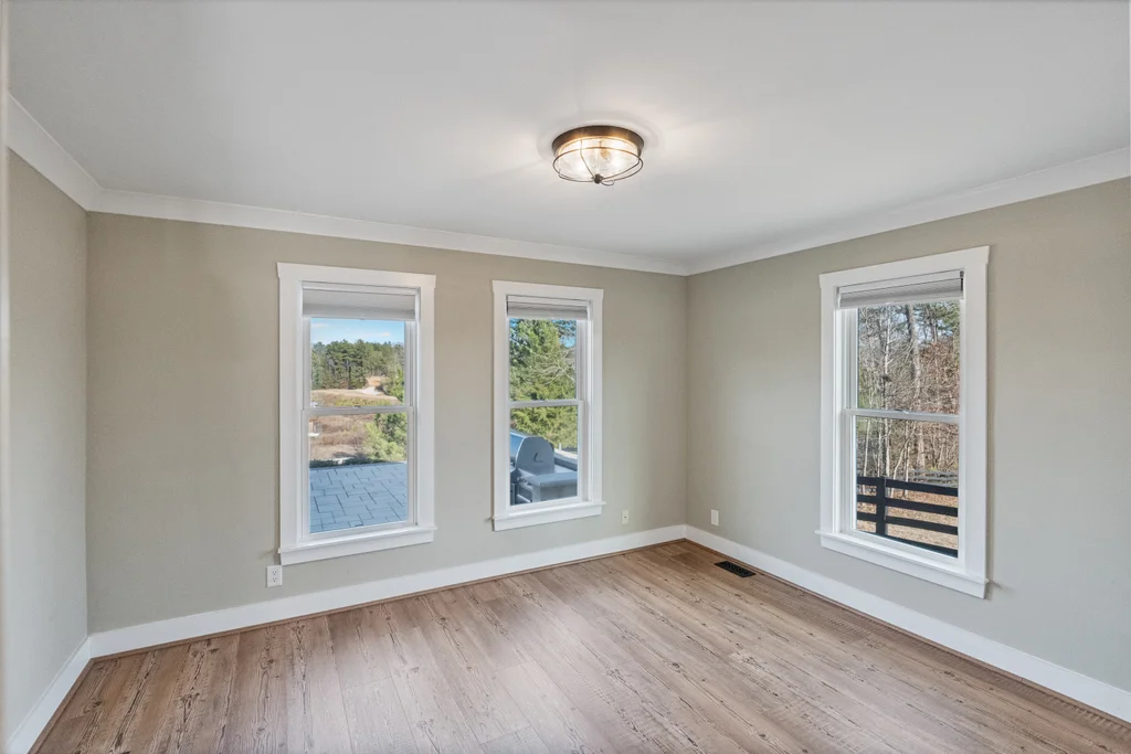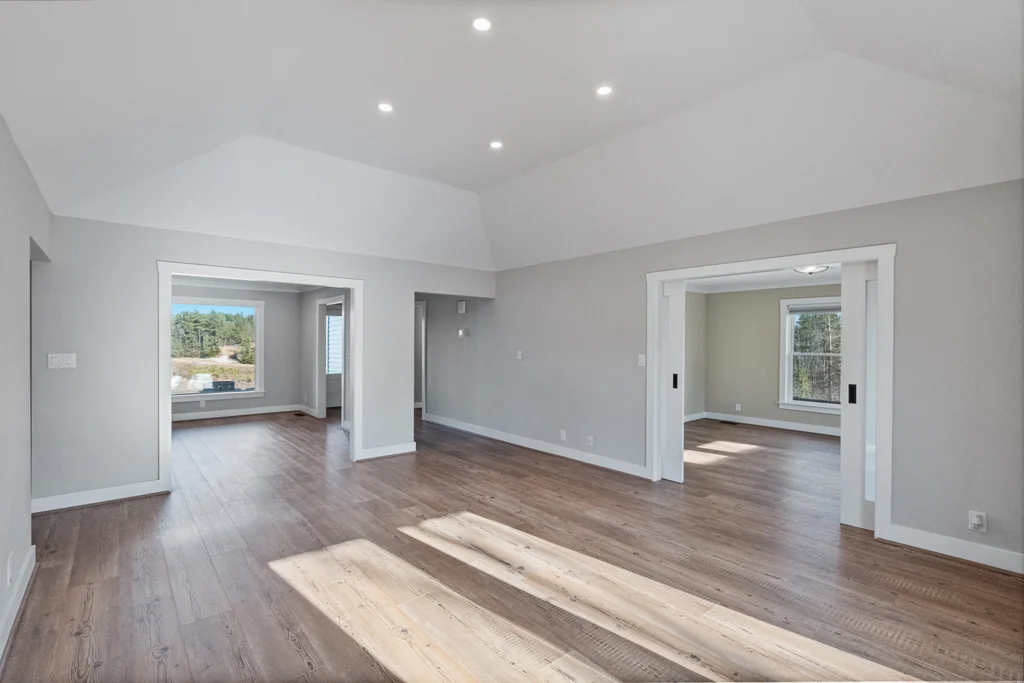 4 Stalls, tack room, feed room, Over hangs on front and back. Water / power equipped. Fans in each stall