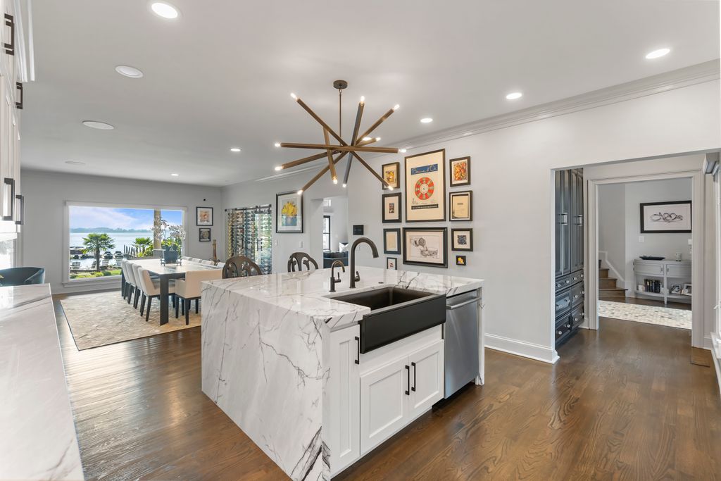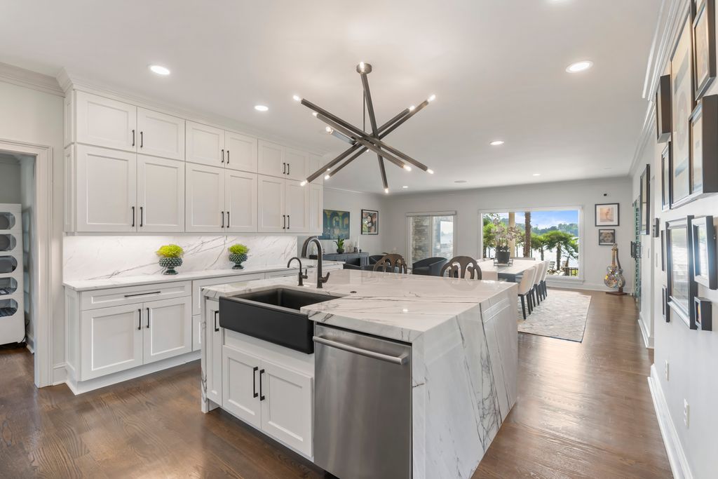 This rare Lake Norman gem offers 4,000 sq ft of luxury living with a 3-car garage and jaw-dropping main channel sunset views, tucked inside the prestigious Peninsula area without the HOA dues or restrictions. Recently transformed by a nearly $750,000 renovation, this home is flawless in size, style & location. Teaser features include $75K White Oak flooring & new stairs, $50K KS Audio Smart Home & surround sound system, Mother of Pearl & marble tile flooring, a custom modern see-through wine rack, built-in espresso machine, $21K great room chandelier, $10K foyer chandelier, $36K in custom metal doors, a striking custom marble fireplace, all new renovated bathrooms & a showroom-worthy marble-finish garage floor. 2 new water heaters, 1 new HVAC, & more. The real showstopper? The kitchen with a $65K Lilac Calacatta marble island, countertop & backsplash, it is simply stunning! Homes like this rarely come to market—request the complete renovation list & schedule your private showing today!