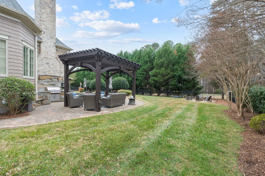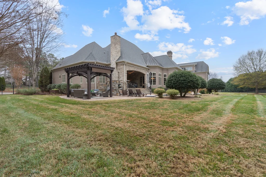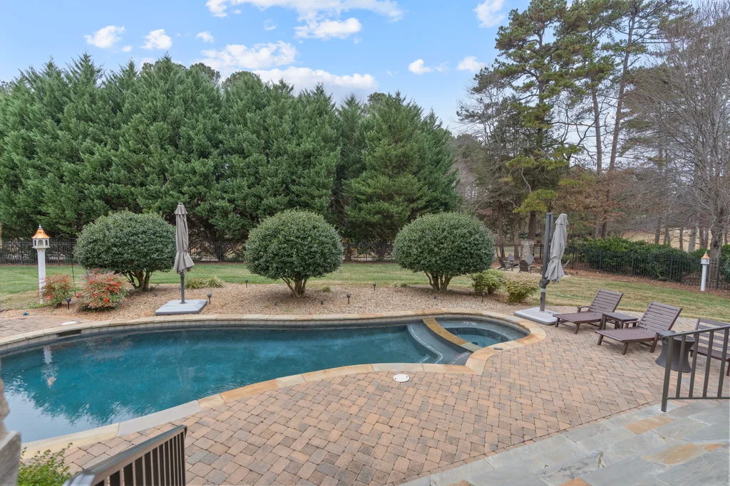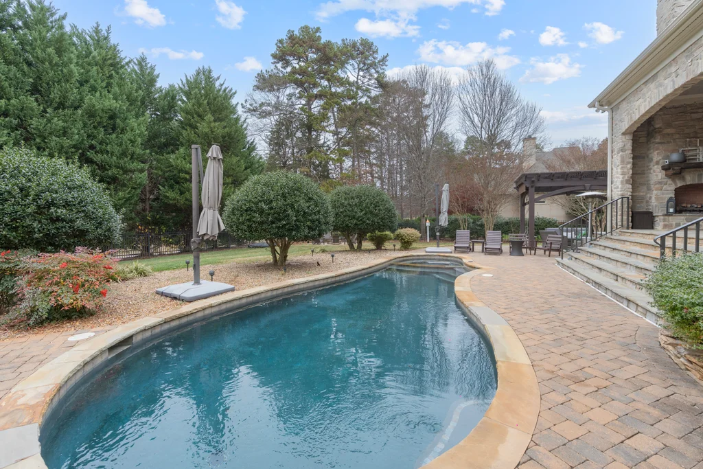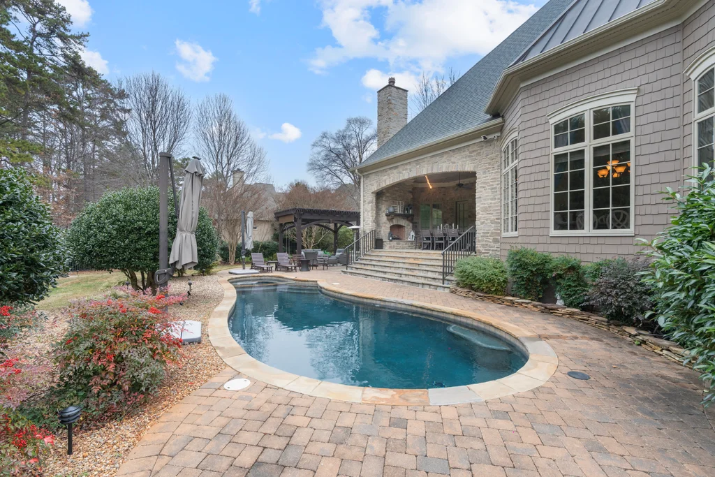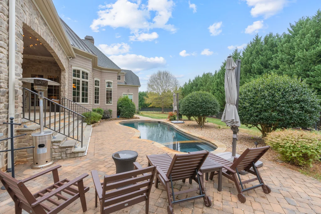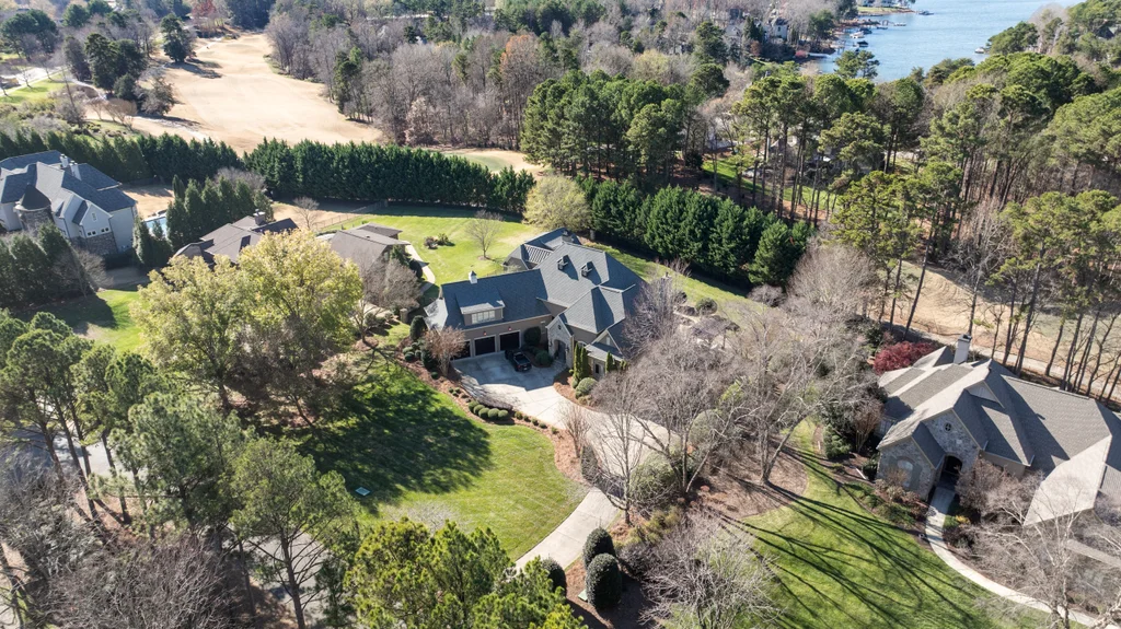 Experience refined luxury living in The Point, one of Lake Norman’s most prestigious golf and waterfront communities. This exceptional estate spans 5,177 sq. ft. of meticulously curated living space on a beautifully landscaped lot overlooking the 2nd tee of Trump National Golf Club Charlotte. Step through the gracious foyer into a soaring great room with 12-foot ceilings — a dramatic introduction to elegant daily living. The main level features a dedicated office, formal dining room, and a serene primary suite complete with a spa-like 5-piece bath and spacious walk-in closet. Two additional bedrooms with a Jack & Jill bath offer comfort and privacy. The kitchen is a chef’s delight, boasting a large island with seating, built-in refrigerator, gas cooktop, beverage fridge, built-in pantry, and breakfast area with views of the backyard oasis. A cozy family room with tray ceilings and a gas fireplace flows effortlessly into a hidden recently added addition where you will find a private bedroom suite with full bath and sitting room, offering patio access ideal for guests or multi-generational living. The upper level reveals a versatile loft/yoga room, a spacious bedroom, and a convenient half bath, along with a bonus room above the garage with its own full bath. Outdoors, enjoy resort-style living with a stone patio centered by a gas fireplace, pool and spa, and a fully fenced yard with privacy landscaping. Entertain in your custom built-in BBQ area featuring sink and storage, or gather around the dedicated firepit seating area — perfect for evening relaxation. Significant upgrades include 2020 septic expansion, pergola, firepit, new carpet, wood floors, and exterior lighting, plus fresh exterior paint in 2025. This property also includes a deeded boat slip (Pier Z, #14). Your gateway to Lake Norman’s 520 miles of shoreline and boatable waters. This is more than a home, it’s an experience. Elegant yet inviting, private yet connected, captures the best of golf, lake, and luxury living in one extraordinary address.