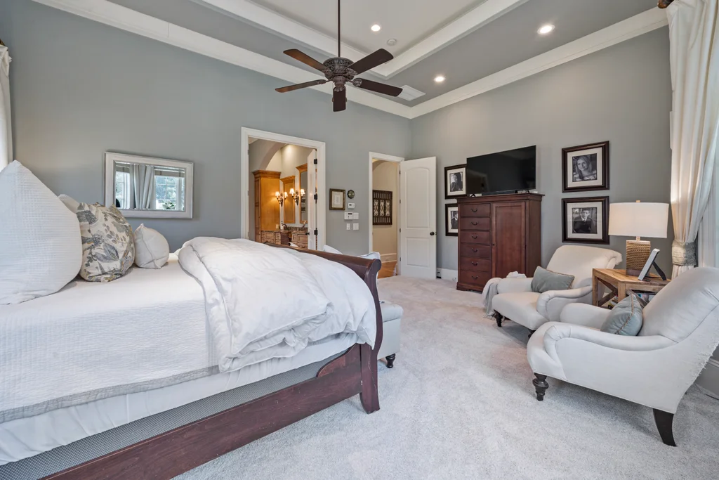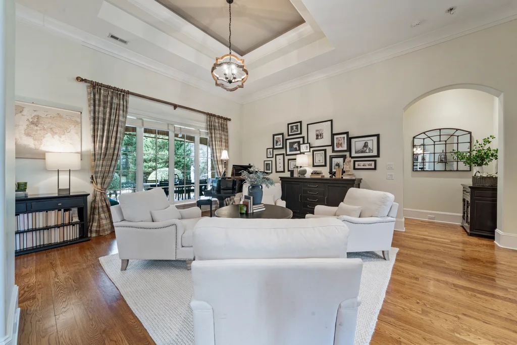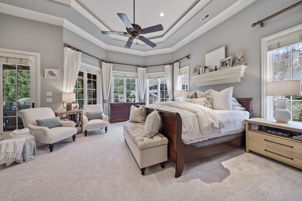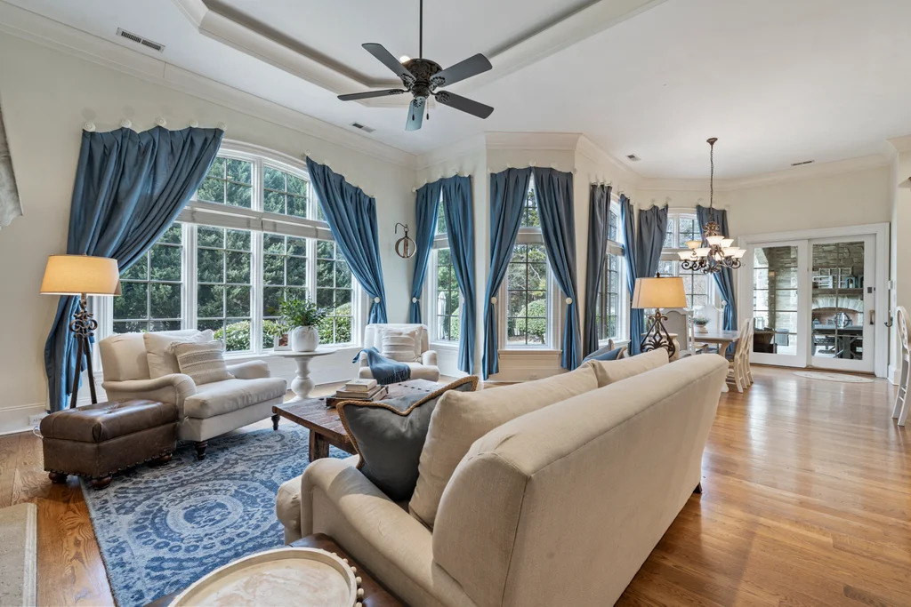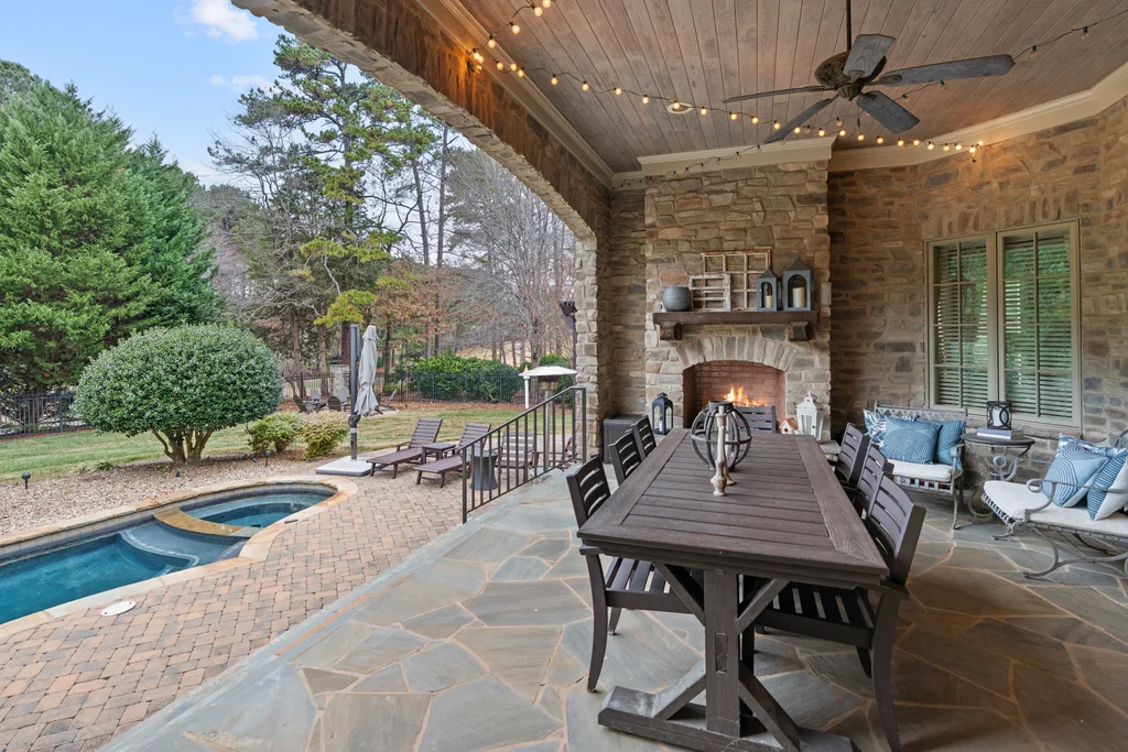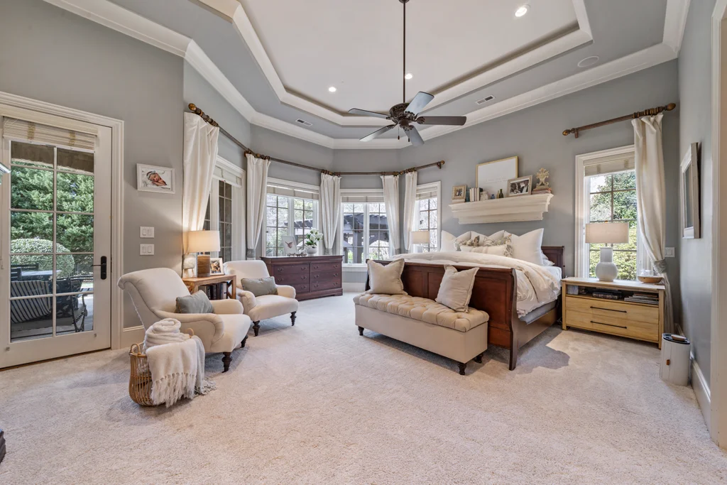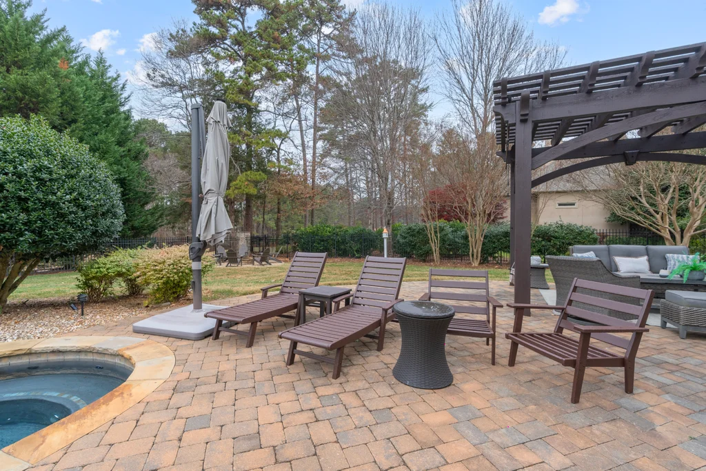Experience refined luxury living in The Point, one of Lake Norman’s most prestigious golf and waterfront communities. This exceptional estate spans 5,177 sq. ft. of meticulously curated living space on a beautifully landscaped lot overlooking the 2nd tee of Trump National Golf Club Charlotte. Step through the gracious foyer into a soaring great room with 12-foot ceilings — a dramatic introduction to elegant daily living. The main level features a dedicated office, formal dining room, and a serene primary suite complete with a spa-like 5-piece bath and spacious walk-in closet. Two additional bedrooms with a Jack & Jill bath offer comfort and privacy. The kitchen is a chef’s delight, boasting a large island with seating, built-in refrigerator, gas cooktop, beverage fridge, built-in pantry, and breakfast area with views of the backyard oasis. A cozy family room with tray ceilings and a gas fireplace flows effortlessly into a hidden recently added addition where you will find a private bedroom suite with full bath and sitting room, offering patio access ideal for guests or multi-generational living. The upper level reveals a versatile loft/yoga room, a spacious bedroom, and a convenient half bath, along with a bonus room above the garage with its own full bath. Outdoors, enjoy resort-style living with a stone patio centered by a gas fireplace, pool and spa, and a fully fenced yard with privacy landscaping. Entertain in your custom built-in BBQ area featuring sink and storage, or gather around the dedicated firepit seating area — perfect for evening relaxation. Significant upgrades include 2020 septic expansion, pergola, firepit, new carpet, wood floors, and exterior lighting, plus fresh exterior paint in 2025. This property also includes a deeded boat slip (Pier Z, #14). Your gateway to Lake Norman’s 520 miles of shoreline and boatable waters. This is more than a home, it’s an experience. Elegant yet inviting, private yet connected, captures the best of golf, lake, and luxury living in one extraordinary address.