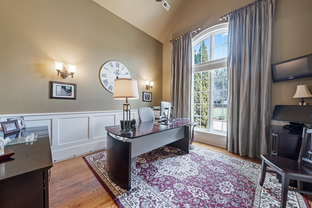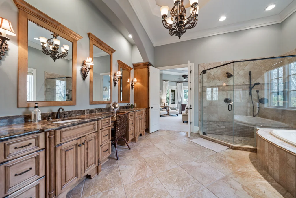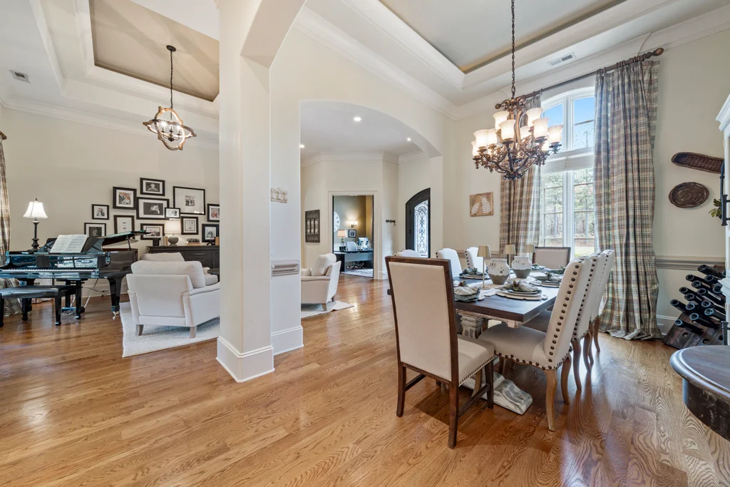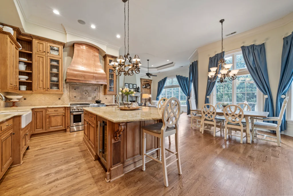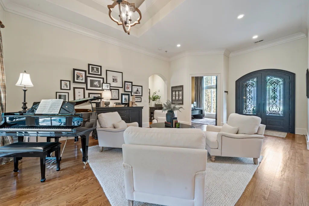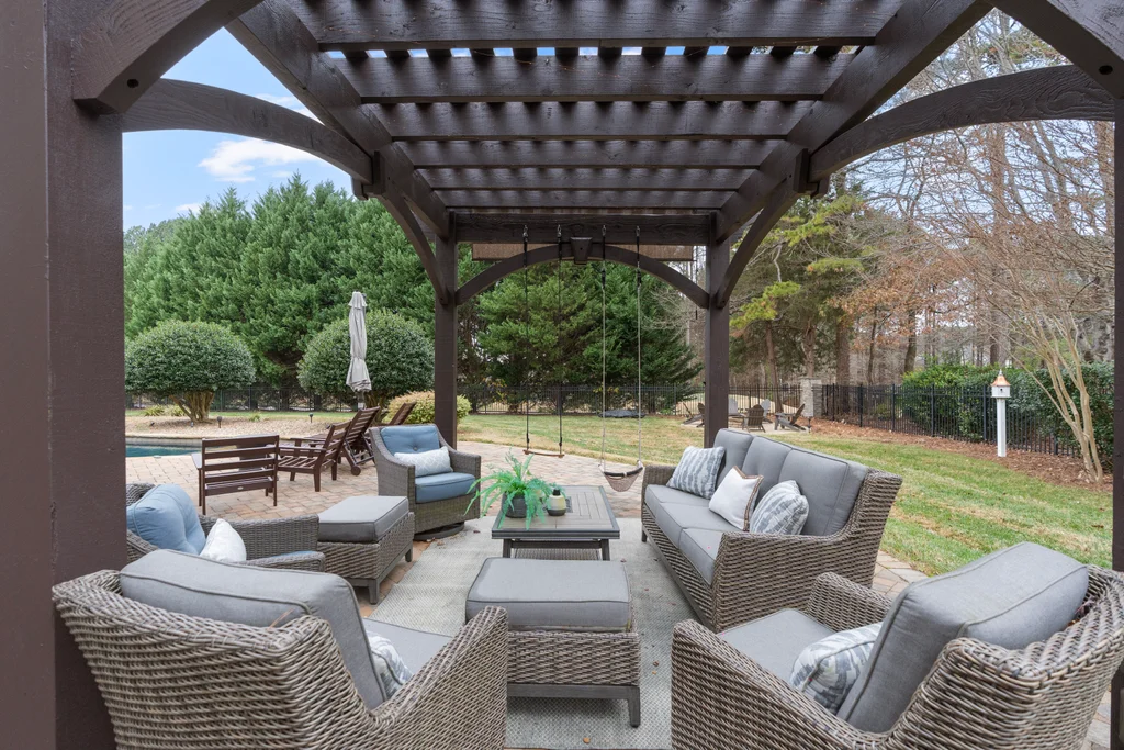 Experience refined luxury living in The Point, one of Lake Norman’s most prestigious golf and waterfront communities. This exceptional estate spans 5,177 sq. ft. of meticulously curated living space on a beautifully landscaped lot overlooking the 2nd tee of Trump National Golf Club Charlotte. Step through the gracious foyer into a soaring great room with 12-foot ceilings — a dramatic introduction to elegant daily living. The main level features a dedicated office, formal dining room, and a serene primary suite complete with a spa-like 5-piece bath and spacious walk-in closet. Two additional bedrooms with a Jack & Jill bath offer comfort and privacy. The kitchen is a chef’s delight, boasting a large island with seating, built-in refrigerator, gas cooktop, beverage fridge, built-in pantry, and breakfast area with views of the backyard oasis. A cozy family room with tray ceilings and a gas fireplace flows effortlessly into a hidden recently added addition where you will find a private bedroom suite with full bath and sitting room, offering patio access ideal for guests or multi-generational living. The upper level reveals a versatile loft/yoga room, a spacious bedroom, and a convenient half bath, along with a bonus room above the garage with its own full bath. Outdoors, enjoy resort-style living with a stone patio centered by a gas fireplace, pool and spa, and a fully fenced yard with privacy landscaping. Entertain in your custom built-in BBQ area featuring sink and storage, or gather around the dedicated firepit seating area — perfect for evening relaxation. Significant upgrades include 2020 septic expansion, pergola, firepit, new carpet, wood floors, and exterior lighting, plus fresh exterior paint in 2025. This property also includes a deeded boat slip (Pier Z, #14). Your gateway to Lake Norman’s 520 miles of shoreline and boatable waters. This is more than a home, it’s an experience. Elegant yet inviting, private yet connected, captures the best of golf, lake, and luxury living in one extraordinary address.
