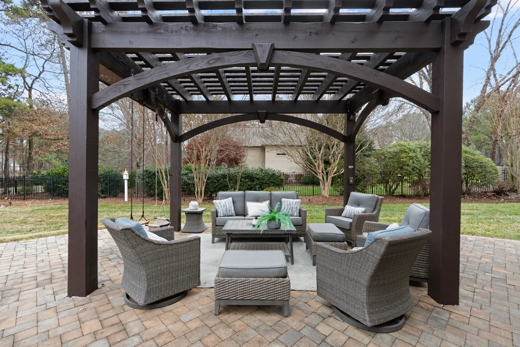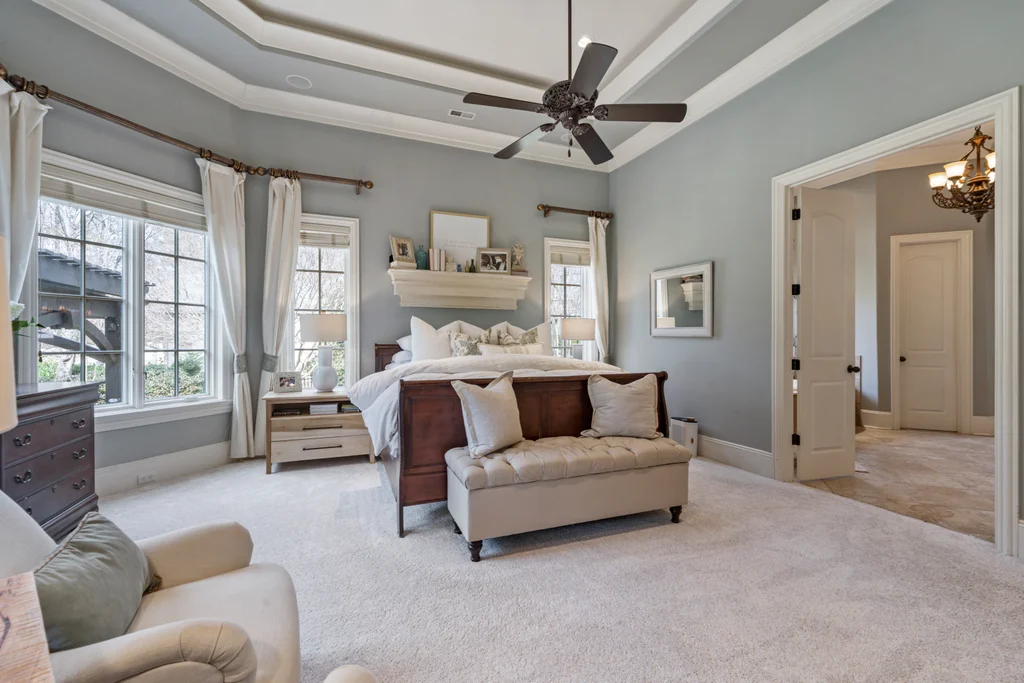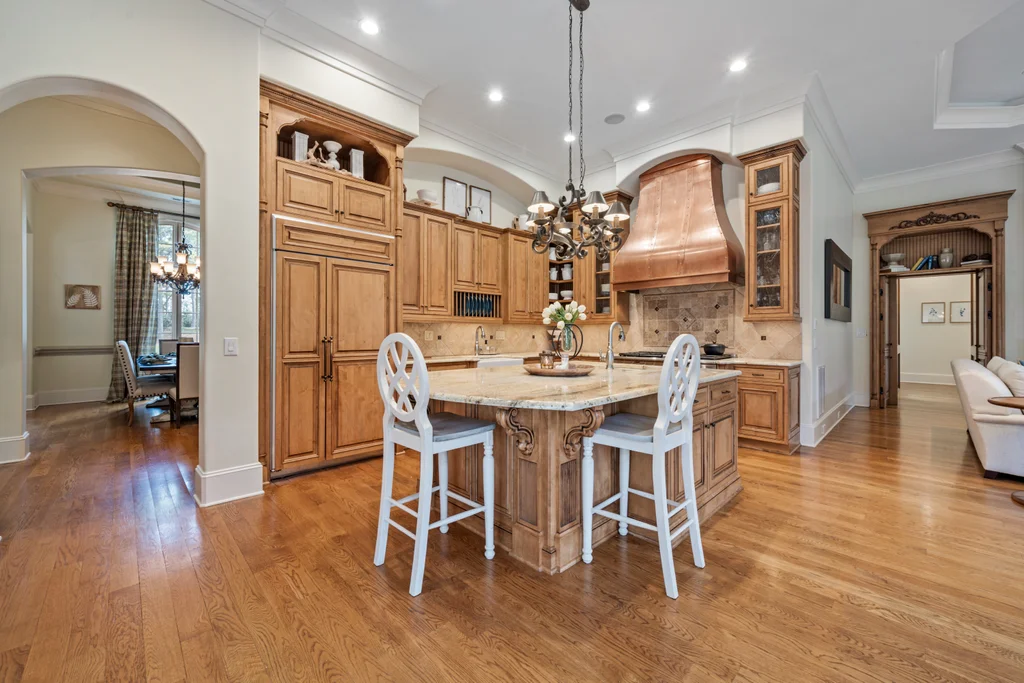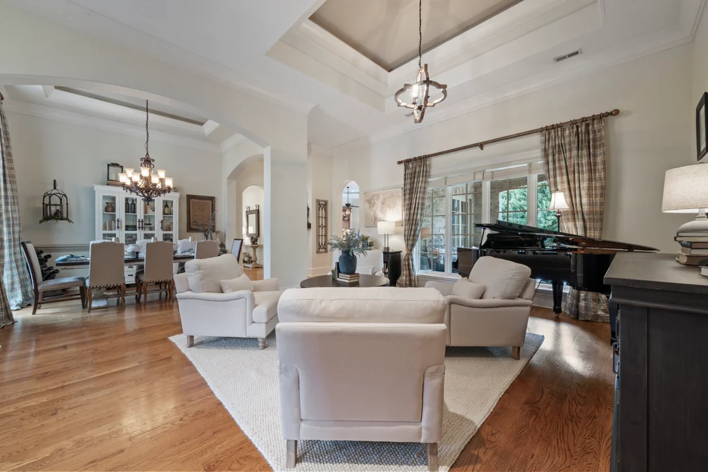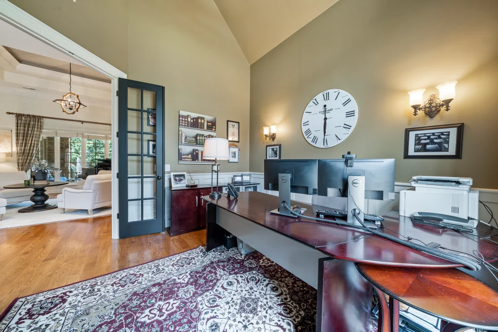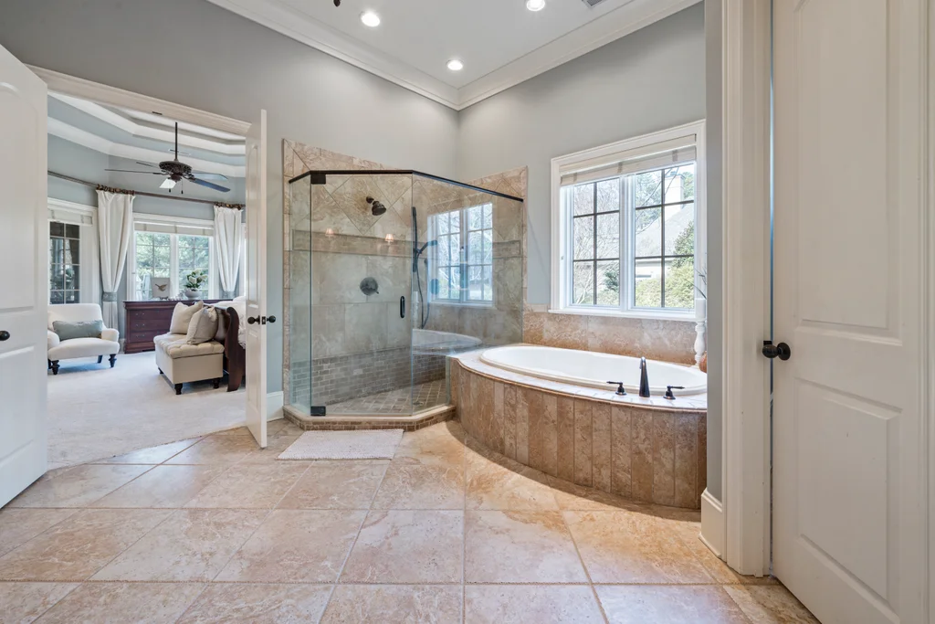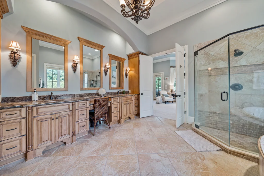 Experience refined luxury living in The Point, one of Lake Norman’s most prestigious golf and waterfront communities. This exceptional estate spans 5,177 sq. ft. of meticulously curated living space on a beautifully landscaped lot overlooking the 2nd tee of Trump National Golf Club Charlotte. Step through the gracious foyer into a soaring great room with 12-foot ceilings — a dramatic introduction to elegant daily living. The main level features a dedicated office, formal dining room, and a serene primary suite complete with a spa-like 5-piece bath and spacious walk-in closet. Two additional bedrooms with a Jack & Jill bath offer comfort and privacy. The kitchen is a chef’s delight, boasting a large island with seating, built-in refrigerator, gas cooktop, beverage fridge, built-in pantry, and breakfast area with views of the backyard oasis. A cozy family room with tray ceilings and a gas fireplace flows effortlessly into a hidden recently added addition where you will find a private bedroom suite with full bath and sitting room, offering patio access ideal for guests or multi-generational living. The upper level reveals a versatile loft/yoga room, a spacious bedroom, and a convenient half bath, along with a bonus room above the garage with its own full bath. Outdoors, enjoy resort-style living with a stone patio centered by a gas fireplace, pool and spa, and a fully fenced yard with privacy landscaping. Entertain in your custom built-in BBQ area featuring sink and storage, or gather around the dedicated firepit seating area — perfect for evening relaxation. Significant upgrades include 2020 septic expansion, pergola, firepit, new carpet, wood floors, and exterior lighting, plus fresh exterior paint in 2025. This property also includes a deeded boat slip (Pier Z, #14). Your gateway to Lake Norman’s 520 miles of shoreline and boatable waters. This is more than a home, it’s an experience. Elegant yet inviting, private yet connected, captures the best of golf, lake, and luxury living in one extraordinary address.