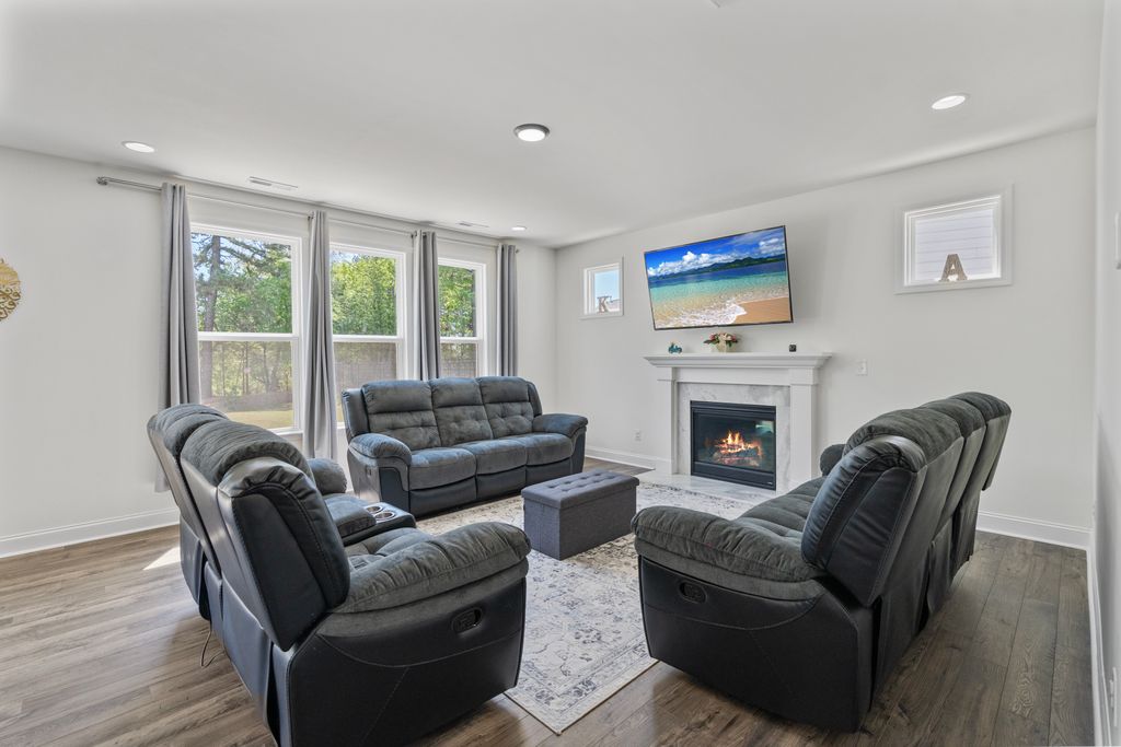 BETTER THAN NEW HOUSE WITH MANY ADDITIONAL FEATURES BACKING UP TO TREES! This exquisite home was built in 2022 & still looks new. Desirable Open Floor Plan w/ a Bedroom/Office & a full bathroom on the MAIN Level. Formal Dining Room or playroom centrally located close to a spacious Great Room w/ gas fireplace & a wall of windows allowing lots of natural light. White Kitchen w/ plenty of cabinets, SS Appliances, a beauiful backsplash, & gas cooktop vented to the outside. The PRIMARY SUITE, 4 Bedrooms, Laundry, 3 Full Baths, & a Loft are on the Upper Level. Shoes are never worn indoors! The home has a level yard, a rocking chair covered FRONT PORCH, expanded driveway, sidewalk connecting to the oversized rear patio spanning the entire width of the home. Gas Grill stub out. Located in the IB school district & close to 77, downtown Mooresville, the newly purchased Hospital & Lowes Corporate. Community Pool. Lender credits for qualified buyers w/ preferred lender