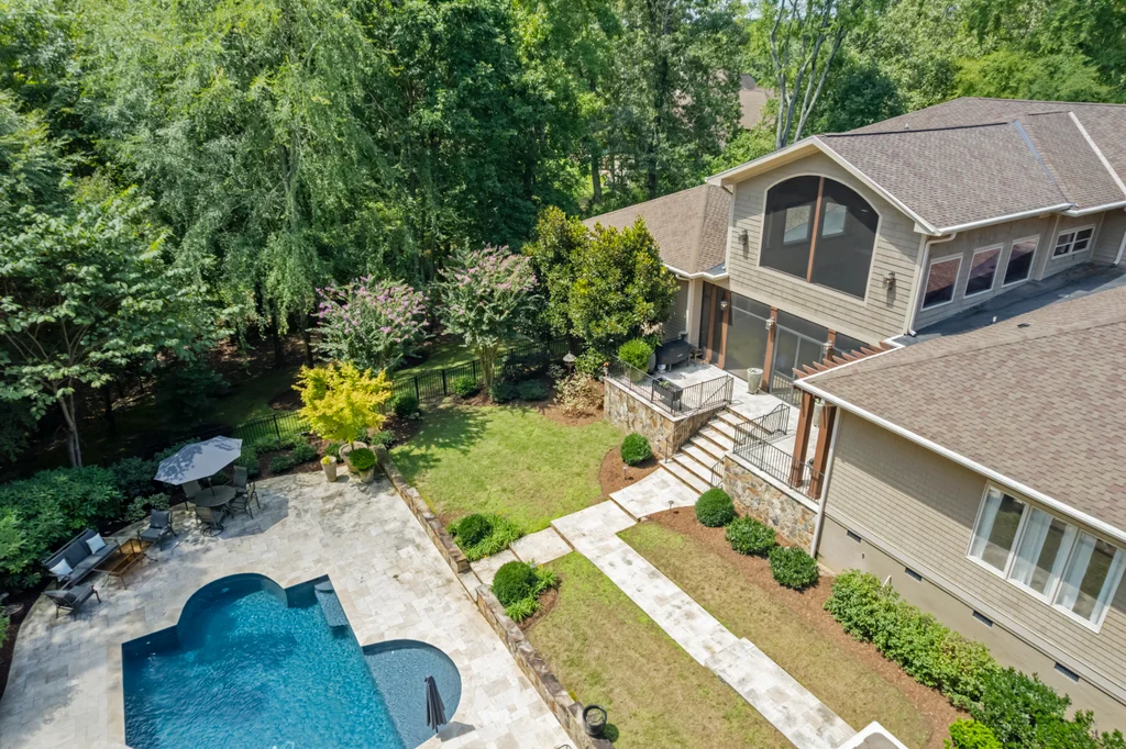Luxury estate situated on 3 ACRES in prestigious gated community of Woodhall. High end custom kitchen, backyard oasis, furnished pool house, this home has it all. Mature trees on a private cul-de-sac lot located across the street from highly desirable Marvin Ridge Schools. Welcome into the home by a stunning two-story grand foyer with double staircase. The chef’s kitchen features top-of-the-line appliances, quartz countertops, and rich custom cabinetry. The main floor has a dedicated theatre room, recreation room with full wet bar, and a spacious primary suite complete with large walk-in closet. Entertainment inside and out with newly updated saltwater pool, outdoor grill area, 996-square-foot covered and screened lounge area with fireplace. Don't forget the outdoor batting cage with lights. Furnished pool house offers a full kitchen, living area, large bedroom, and two full bathrooms—ideal for guests or in-law suite. Meticulously landscaped grounds and maintained home.
