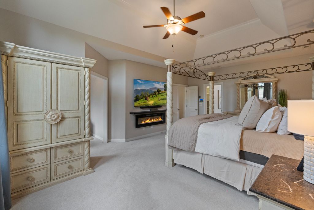 Tucked just inside Skybrook, this exceptional home is the kind that stops you in your tracks. Walking distance to Wallace Pond makes every day feel like a retreat. You're welcomed into a home where light spills through large windows, casting warmth across connected living spaces. The updated white kitchen is bright & classic with a gas cooktop, ample prep space & easy flow to the dining area. It’s the kind of kitchen that invites you to host a crowd. Upstairs, the primary feels like a private wing—featuring two sitting rooms, two custom closets, a fireplace & renovated bath with a freestanding jetted tub. The basement adds more living space with a media room, exercise room & room to grow. Step out back & you’ll find a Trex-style deck & a blank slate, perfect for adding a pool. A 3-car garage rounds out the thoughtful design. Set in an amenity-rich neighborhood, this home effortlessly blends comfort & location. Come see why this might just be the perfect fit for your next chapter.